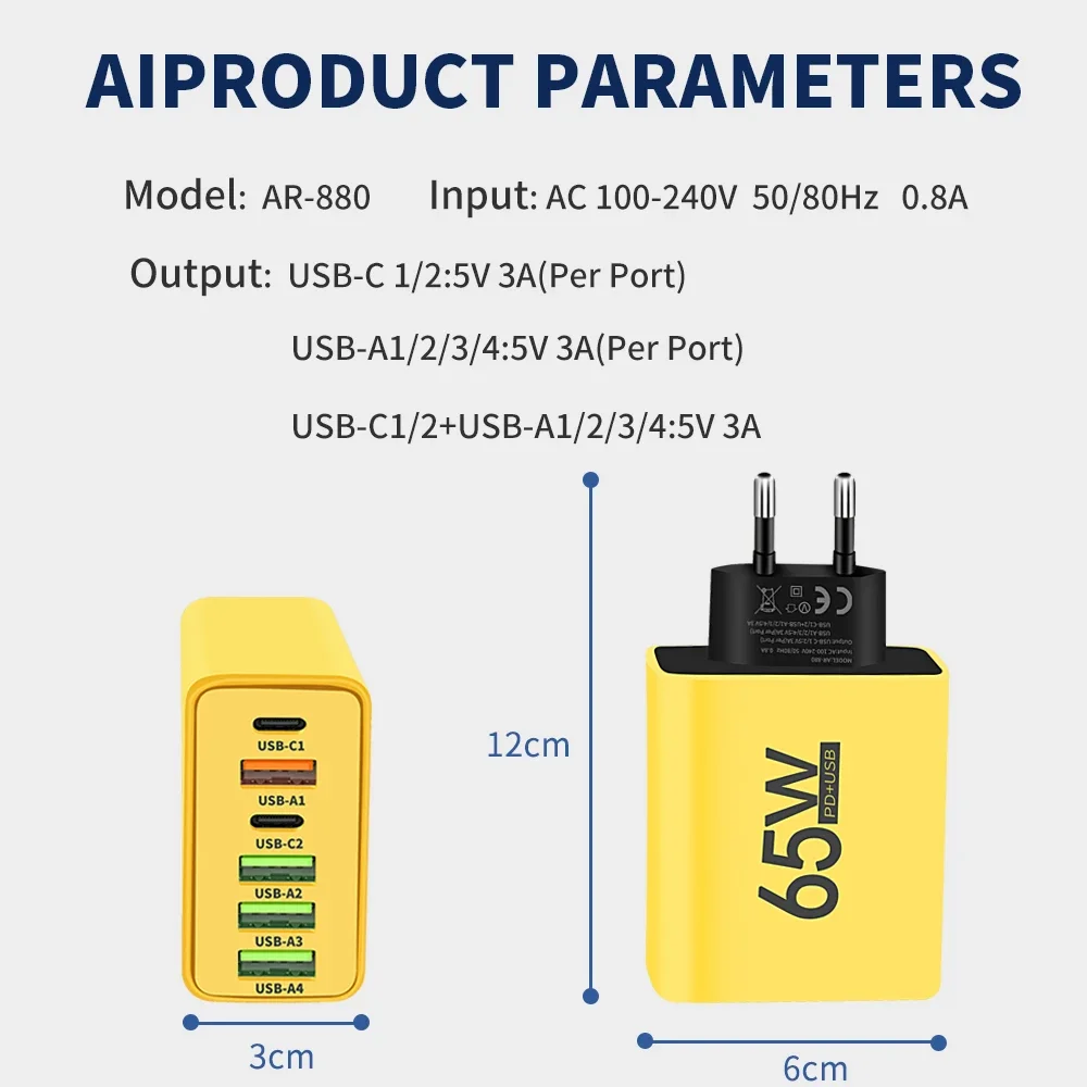 USB-C1/2+USB-A1/2/3/4: 5V 3A