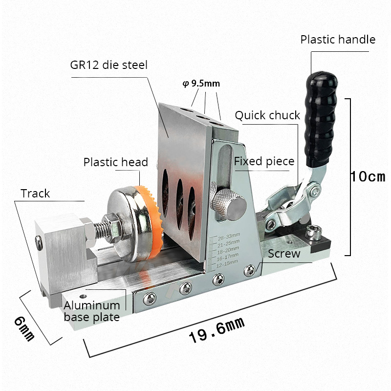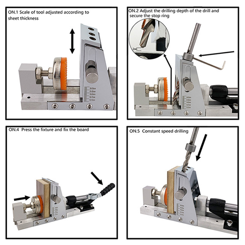 Set1 package description: Upgraded Single-side Operation--- Our slope hole locator and handle are on the same side, no matter small or big wood boards, it will be always easy to operate and save time that you can even finish the woodworking by yourself. While others' are on the different side, needing you to operate to the other side, which is inconvenient and time-consuming for you.