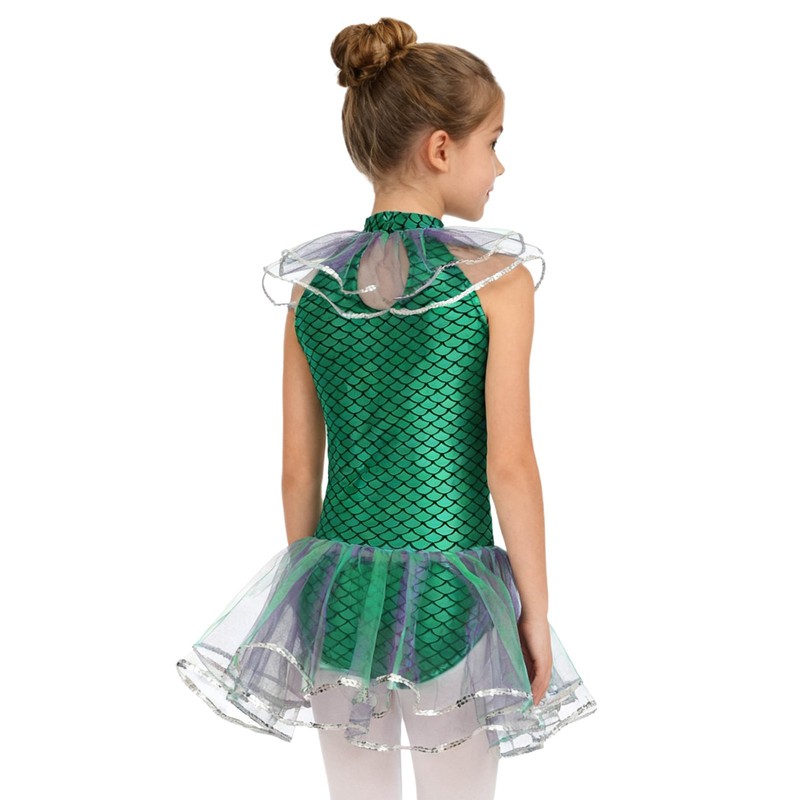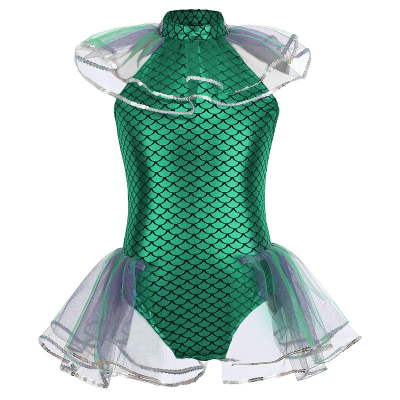 Decorated with mermaid fishscales print, ruffle mesh and sparkle sequins, making girl super beautiful.