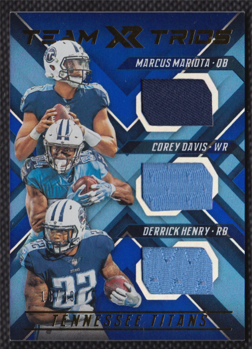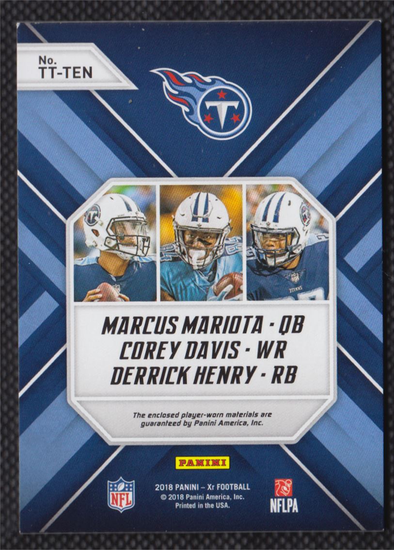 | 2018 Panini XR Team Trios Materials Corey Davis/Derrick Henry 16/49 #TT-TEN |