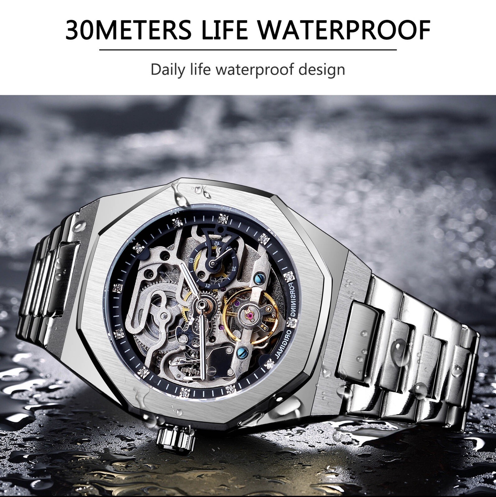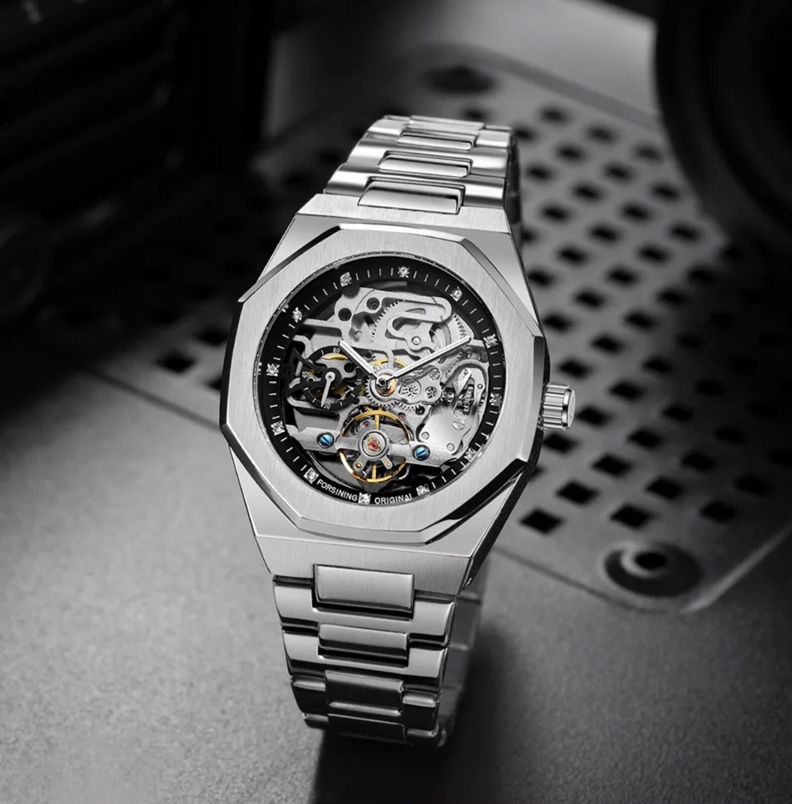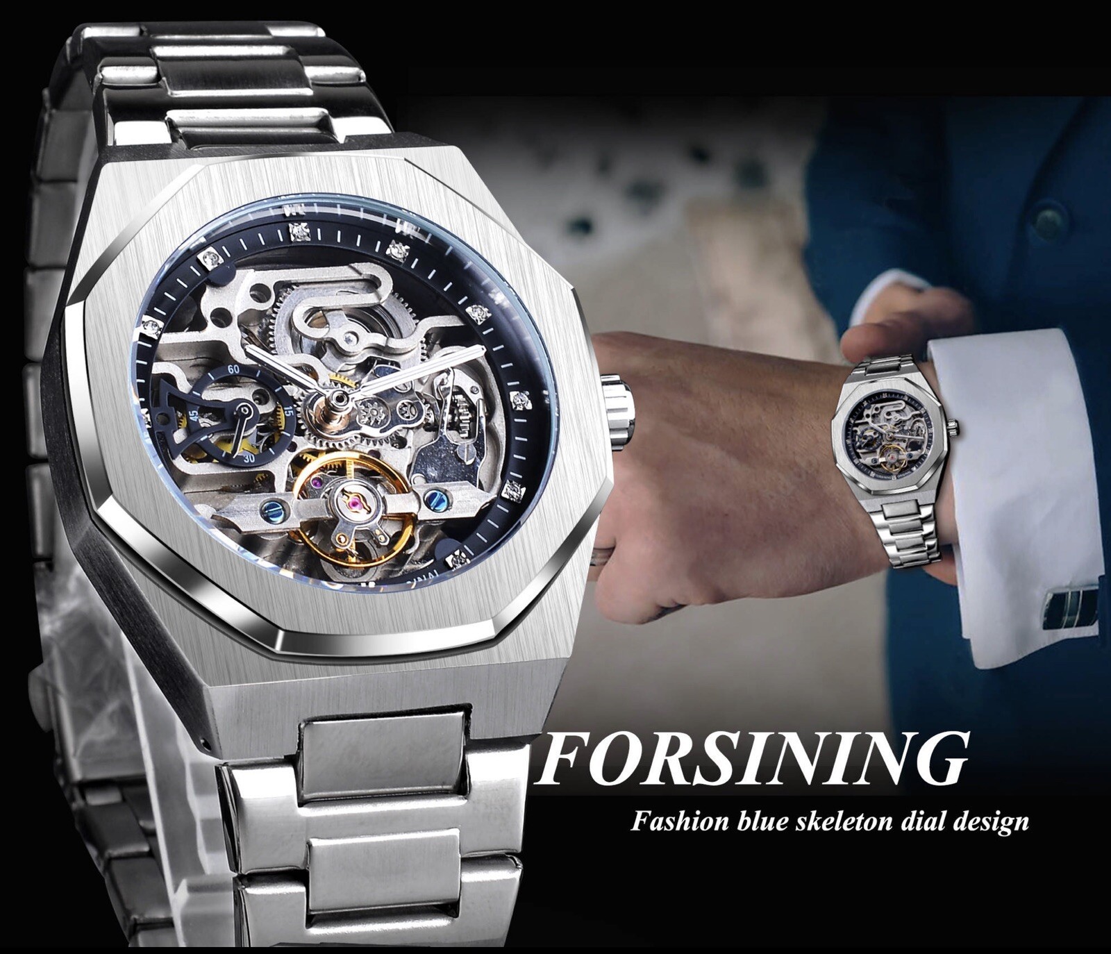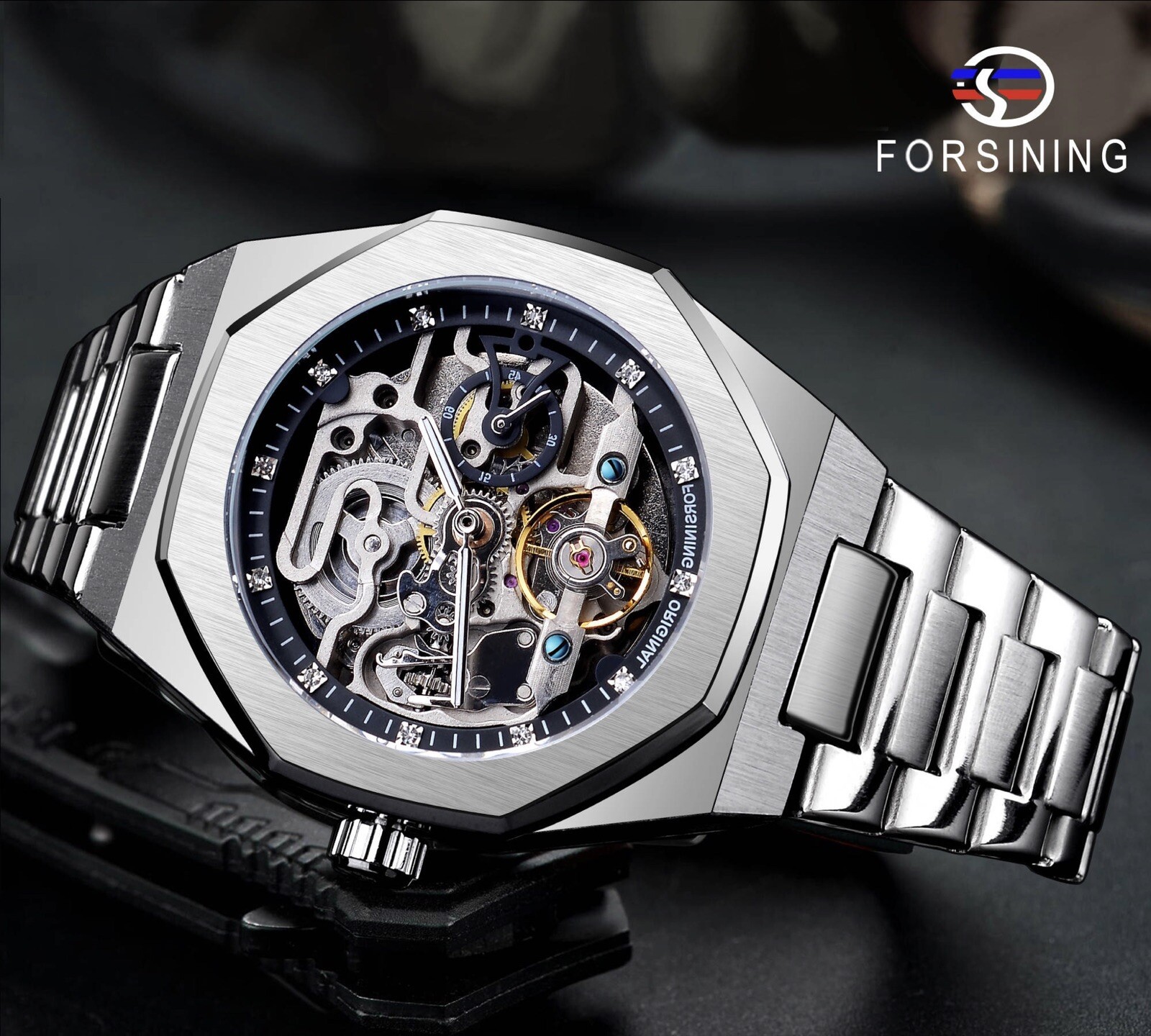 Introducing this stunning men's luxury wristwatch from FORSINING. With a unique skeleton dial pattern and luminous hands, this watch is perfect for any occasion, whether it be casual or formal. The watch is self-winding and features a tourbillon, seconds hand, and 12-hour dial. Its water-resistant design and sturdy stainless steel band make it perfect for any sport or outdoor activity.