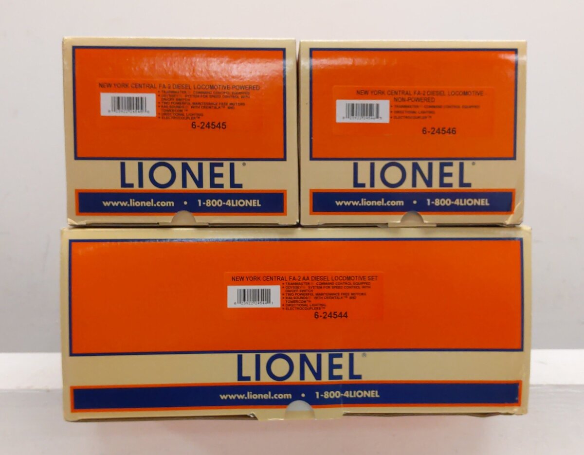 Here is a Lionel 24544 New York Central FA-2 AA Diesel Locomotive Set. Features include TMCC equipped, Odyssey speed control, two powerful motors, RailSounds with Crewtalk and Towercom, directional lighting and electrocouplers.