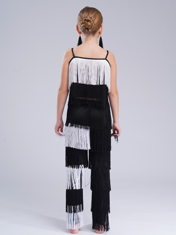 Girl’s camisole and pants set with tiered tassels is eye-catching enough to make your child the spotlight while dancing.