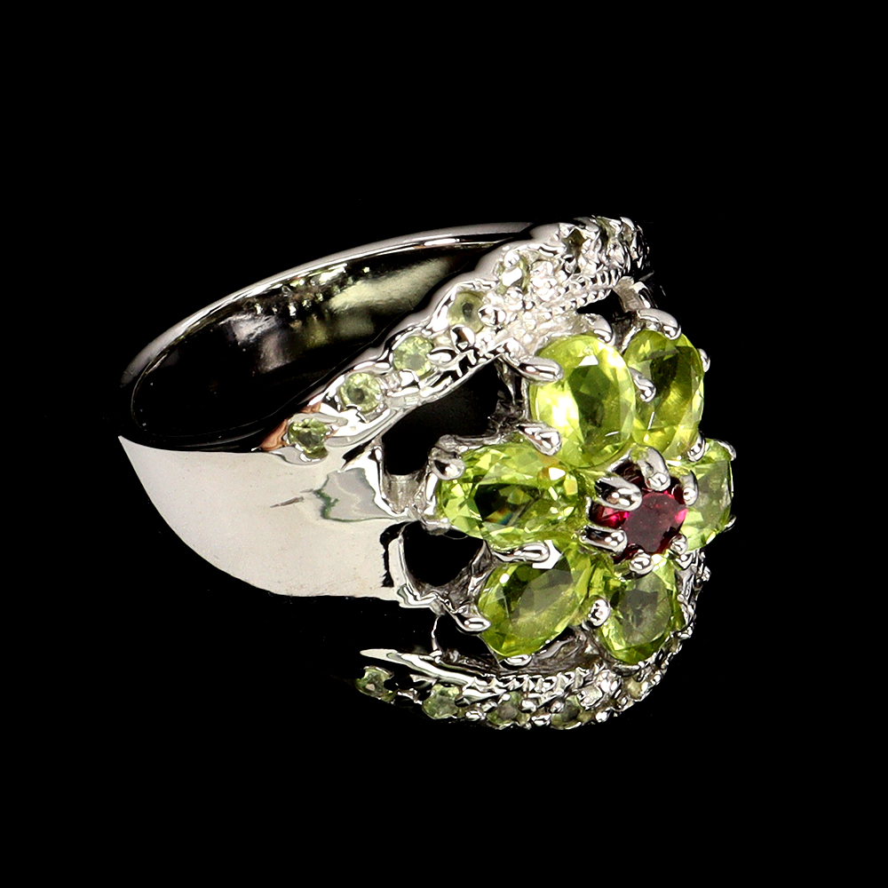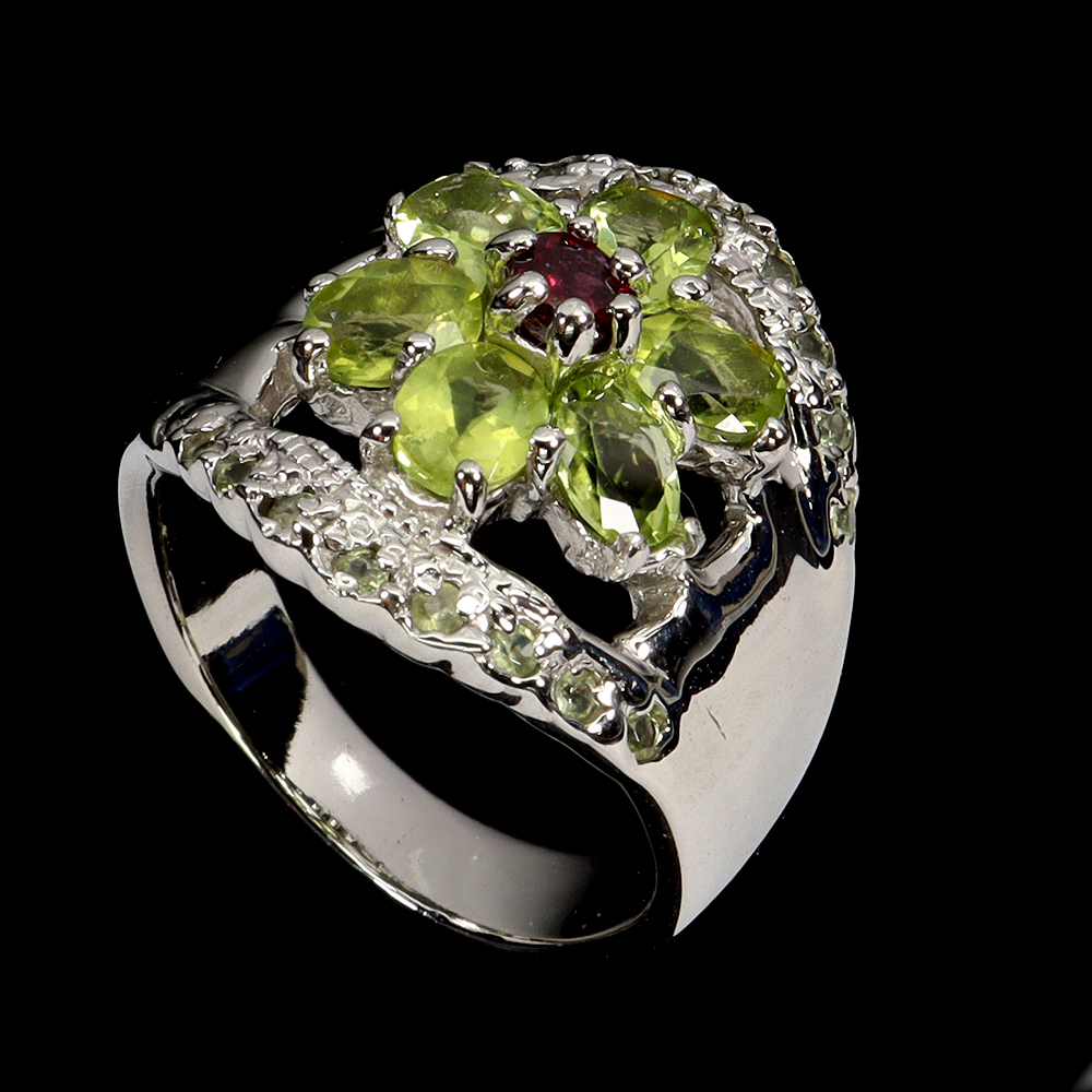 925 Sterling Silver Ring Oval Peridot Rhodolite Natural Gemstone Jewelry