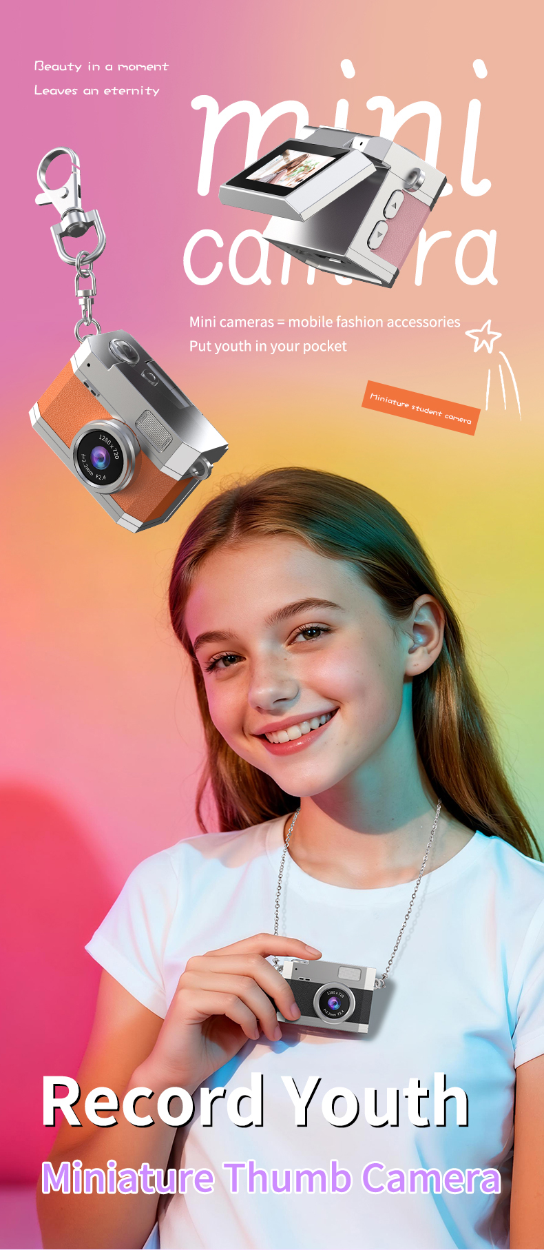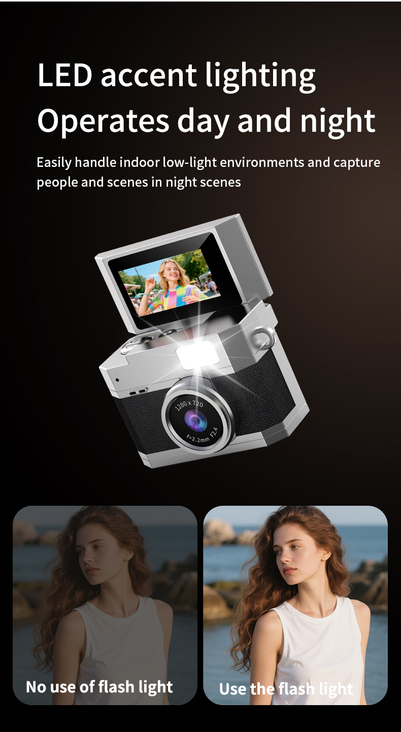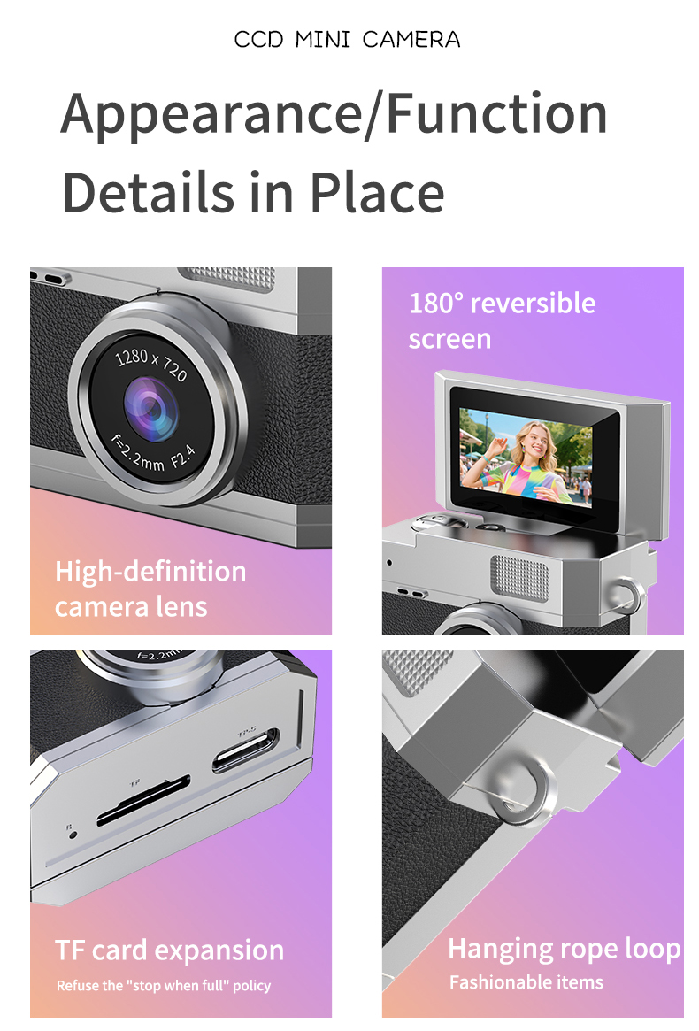 Mini Studenten Kamera Retro CCD Digitalkamera Miniatur-Daumen 1080P Videorekorder LED Fülllicht 0,96 Zoll IPS Flip Selfie Bildschirm Tragbare Mini Digitalkamera