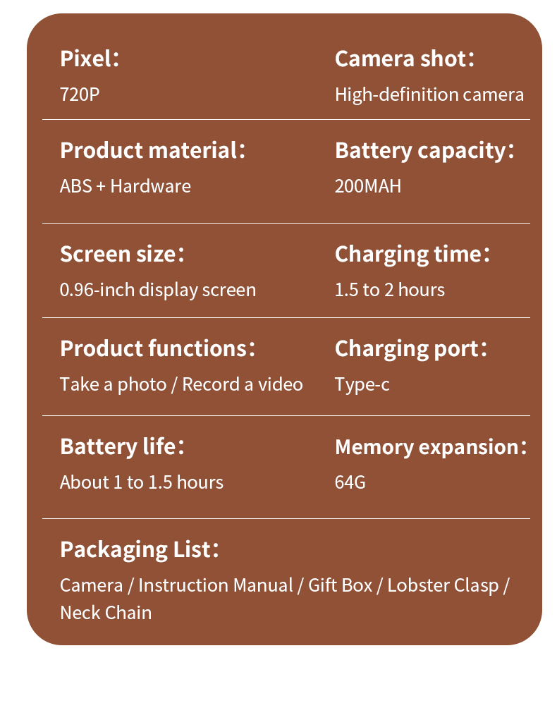 * Material der Kamera: ABS+Hardware