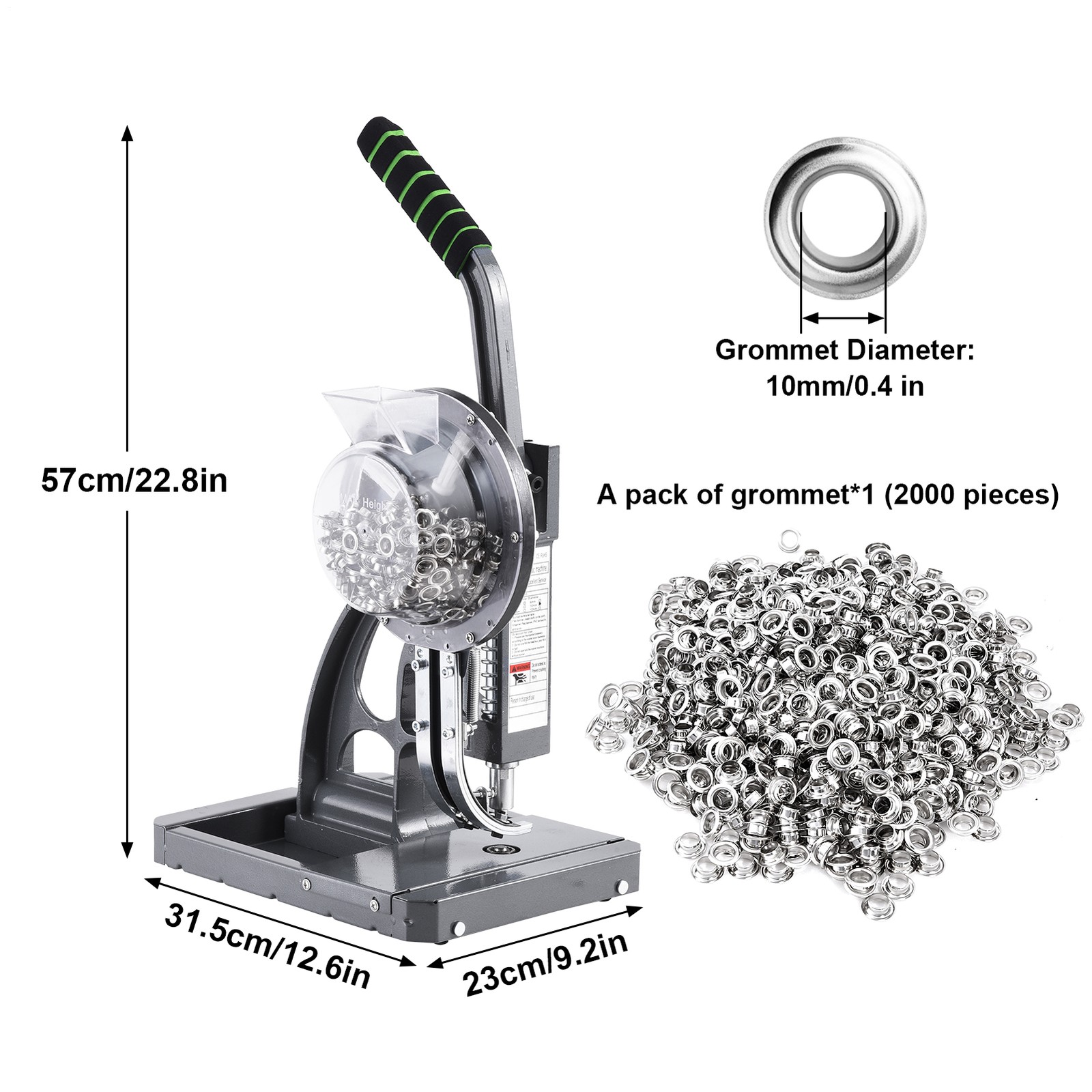Automatic Hand Press Eyelet Grommet Machine Punch Tool Kit 3/8" 2000 Grommets