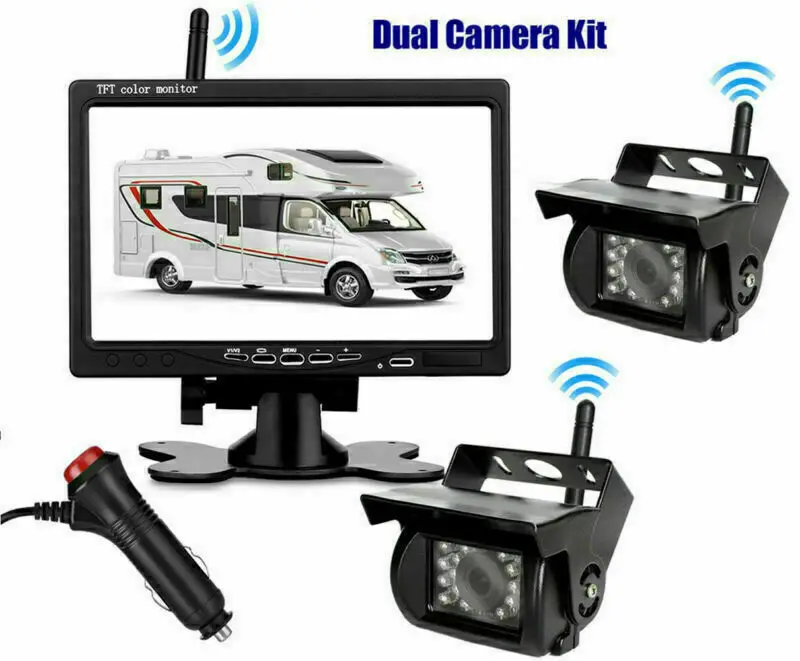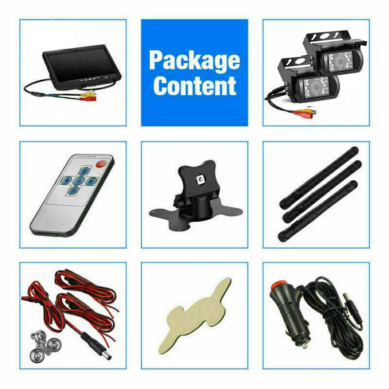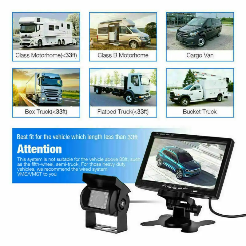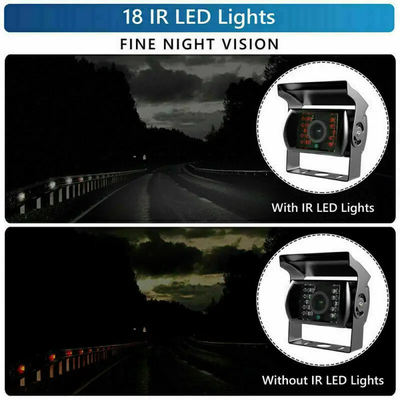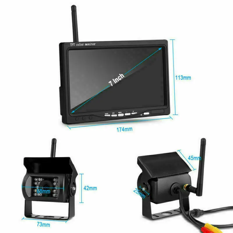 2. Rearview Night Vision IR Waterproof Backup Reverse Camera with Built-in2.4GHz Wireless Transmitter --Auto Water-Proof Camera Lens, with 18 individual Infrared (IR) LED. Effective range: 15m. It help your view still clearly at night or in bad weather.