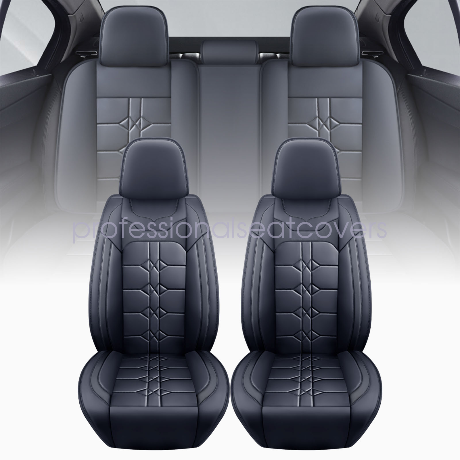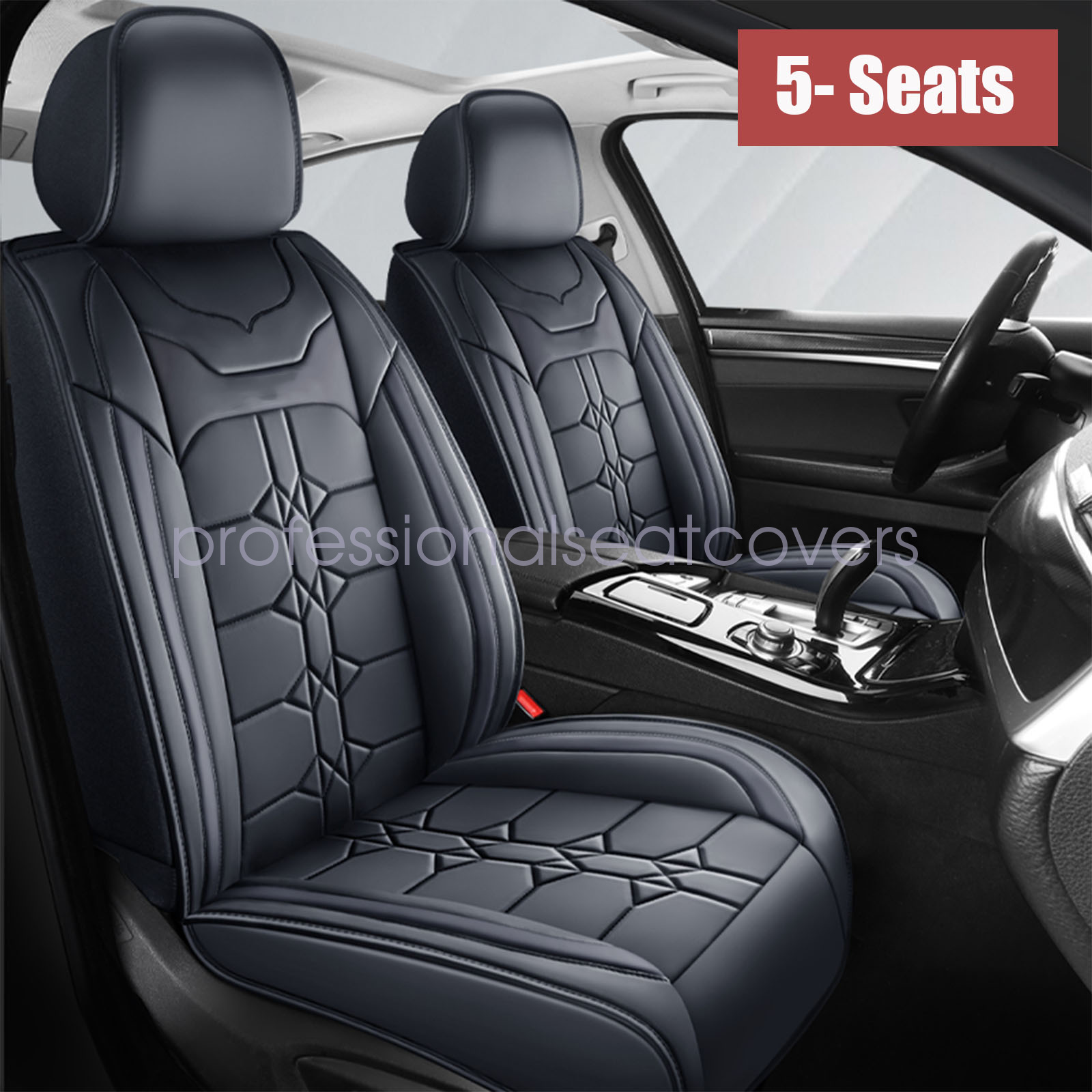 For 2007-2023 Jeep Wrangler PU Leather 5 Seat Covers Full Set Front & Rear Protector Cushion Black
