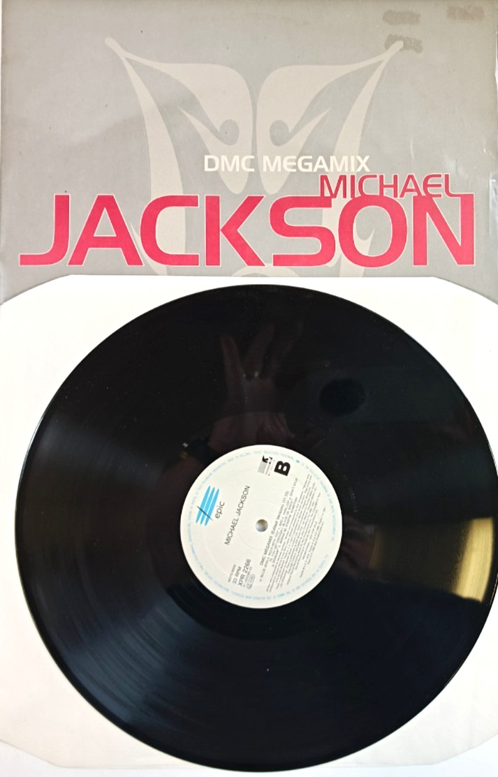 Rare UK promo 12" featuring an exclusive megamix of Michael Jackson’s hits, blended for club play by DMC. Includes house, garage, and RnB/Swing elements. Issued by Epic and MJJ Productions. A sought-after DJ tool and collector piece from the mid-90s remix era.