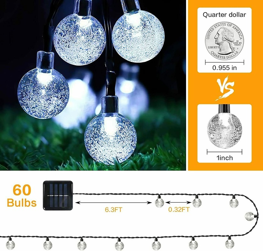 Festivals, Weddings, and Yard Decorations: One of the needs of the festive atmosphere. With these warm and intimate ideas to give your patio, courtyard, party, tree, room, garden and backyard. Let him harvest an unexpected joy. Let the good memory always accompany! Crystal globe lights has the powerful function of creating an atmosphere, so use it to foil your favorite thing, or the scene you think is important.