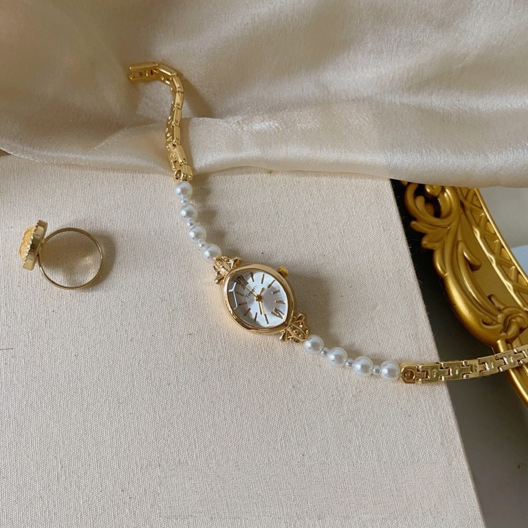 This Gold French Vintage - Style Dainty Women's Wrist Watch is a trendy and charming gift for elegant ladies. It features a square case and a 12 - hour diamond - studded bezel, exuding a dressy and formal aura. The watch is equipped with a geometric gold dial embellished with 4 jewels, a brass case, and a quartz movement, guaranteeing accurate timekeeping. Its matching gold bracelet band, which follows a vintage theme, makes it a remarkable accessory. With a water resistance of up to 3 bars and a case thickness of 7mm, it is both stylish and practical for daily wear.