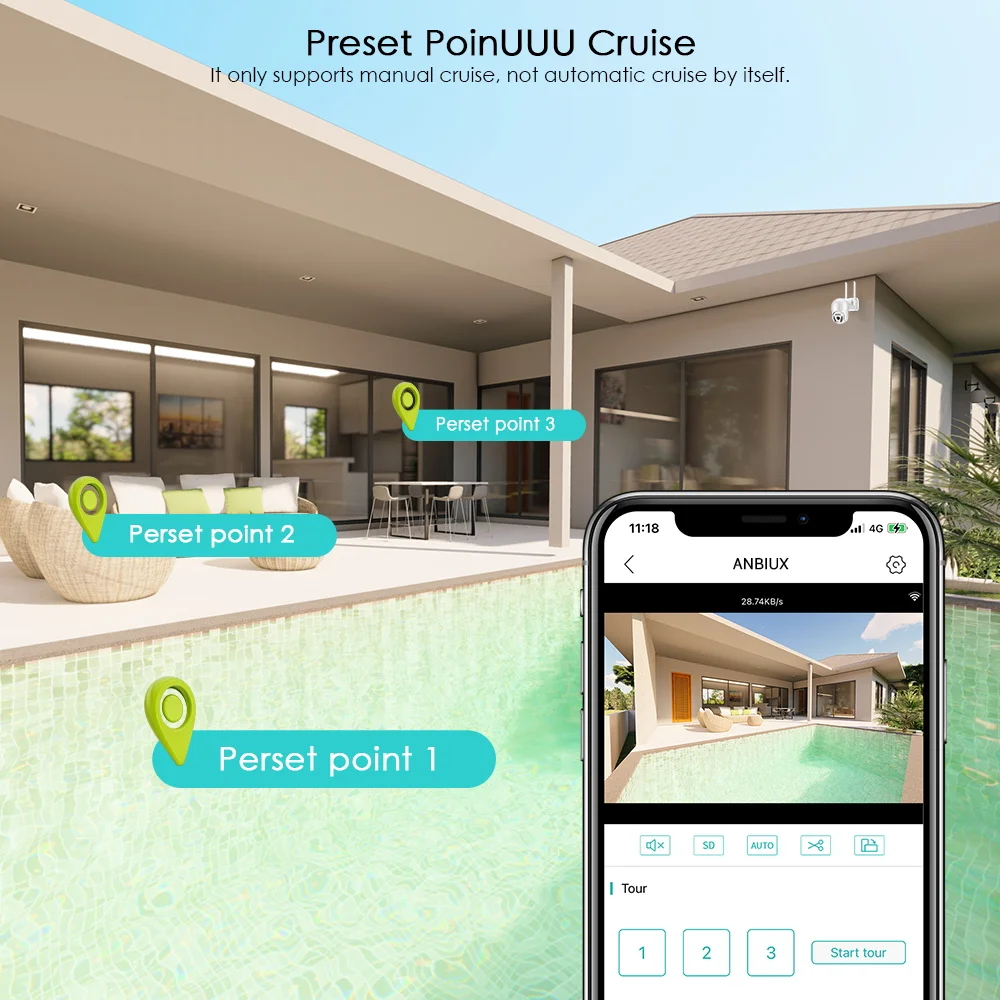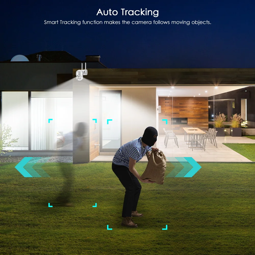8MP 4K Wifi PTZ IP Camera Outdoor Main Features: *HD 2MP(1080P)/5MP/8MP(4K) Resoluton for option; *Support true humanoid intelligent alert double light; *Support black light full color, color night vision is clear; *Three modes preview, black light full color infrared night vision double light warning; *Support PC CMS client save and play in real time; *Alarm mode custom setting: DIY custom setting alarm bell; *Humanoid detection: mixing line, area, two-way flow detection, for human form, the item triggers no alarm; *PTZ: rotates 300 degrees left and right and rotates 90 degrees vertically; *Dual Antenna 5DB transmits signals, high gain design, and the signal is bigger and stronger; *H.265X new storage design, TF card storage is lower, more stable and more durable; *Three matching connection modes: AP hotspot direct connection/ wireless WiFi connection/bringing network port wired connection; *Exclusive patented spherical heat treatment, with an average of 30 degrees, let the screen exposure heat dry and disappear; *Support cloud storage(need buy in iCSee app), data security is more stable 1 times. Product Size & Listing 1x PTZ Camera 1x User Manual 1x Power Supply 1x Screws Bag (SD Card is optional) 2MP 5MP 8MP Comparison 8MP features higher definition superior than 5MP and 2MP. The camera provides ultra-high quality 8.0 megapixel images. Bring you a smooth and stunning super HD experience. Smart Pan/Tilt/Rotate PTZ camera uses pan, tilt, and zoom to provide both wide-area coverage and great detail with a single camera. Use iCSee APP to remotely control the camera up/down & left/ right with less blind area. 5.0X Digital Zoom If you need view more details, press and hold the screen with both hands to Zoom in/out and see more details, digital zoom is photo zoom instead of optical zoom. Smart IR/Color night vision This camera has built-in 9pcs Infrared/White Dual-light LEDS, which can be fully controlled on the mobile phone APP and can switch Among normal Infrared /White light / Double Light Vigilance modes simply and quickly. AI Human Detect Alert Quickly finds human targets and immediately sends a notification to your phone. It only detects the human shape and will not trigger falsely for objects such as cars and trees. Motion Auto tracking After locking the target, the camera will adjust the pan rotation automatically. Tracking Moving Objects, Cars, Pets, Human, and push alerts notifications to your Smartphone. Outdoor Weatherproof The application of IP65 technology ensures that the camera will not be easily invaded by the external environment. Stand in the storm, withstand the blizzard, guard your home all the time. SD Card Slot & Cloud Storage Insert a SD card, it is a complete remote home security system, recording 24*7 videos or only motion events, and easily playback on phone app (support 32~128GB micro SD card, card is not included), cloud storage need buy in App. Smooth Two-way Audio This home security camera system lets you listen in and talk back through the built in speaker and microphone that work directly through your iPhone or Android Mic. Enjoy the convenient communication when you're resting or busying. App Access Anywhere Anytime Supports Smartphone iCSee App (iOS, Android), tablets (iPad, Android), Windows PC CMS client. This is the most convenient way to watch from anywhere, anytime. Support NVR and preset Cruise It can be connected to a third-party NVR centralized management camera. All our NVRs for IP cameras could work with this Camera. Various Place Installation It can be installed in almost any environment, see the mysterious parking lots, watch the buzzing courtyard, keep an eye on the villa, guard the warehouse. Wifi Connection & LAN Connection Powered by DC12V adapter. You can connect the camera to Wi-Fi network. You can setup wifi connection of the camera or LAN Search with network cable connected to router. Work with 2.4G wifi only (Does not support 5G).