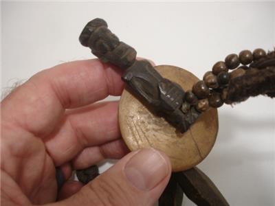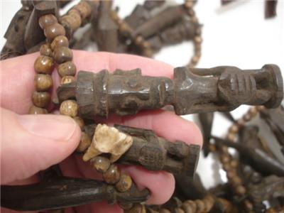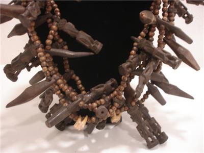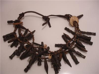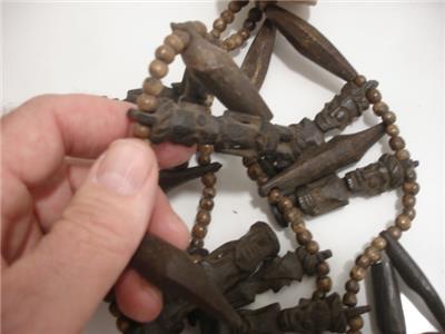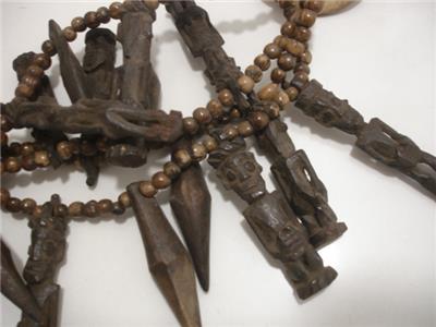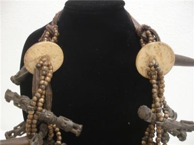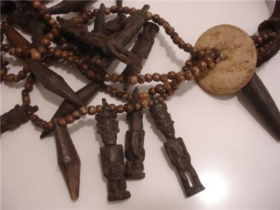 Stunning! 100% authentic - just view the photos! I am sorry for the lighting glare. I love this necklace, I bought it at least 30 years ago at one of the Ethographic shows in Santa Fe, NM. This is a MAJOR piece, it is LOADED with various carved figures, beads, teeth and leather. I added the buffalo leather straps so it could be worn longer, it ties in the back so it is adjustable. The total length is approx 50". I was told this is from Nigeria. View the photos, this necklace is one belongs in a Museum!