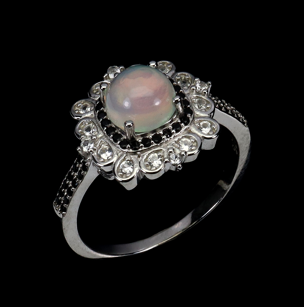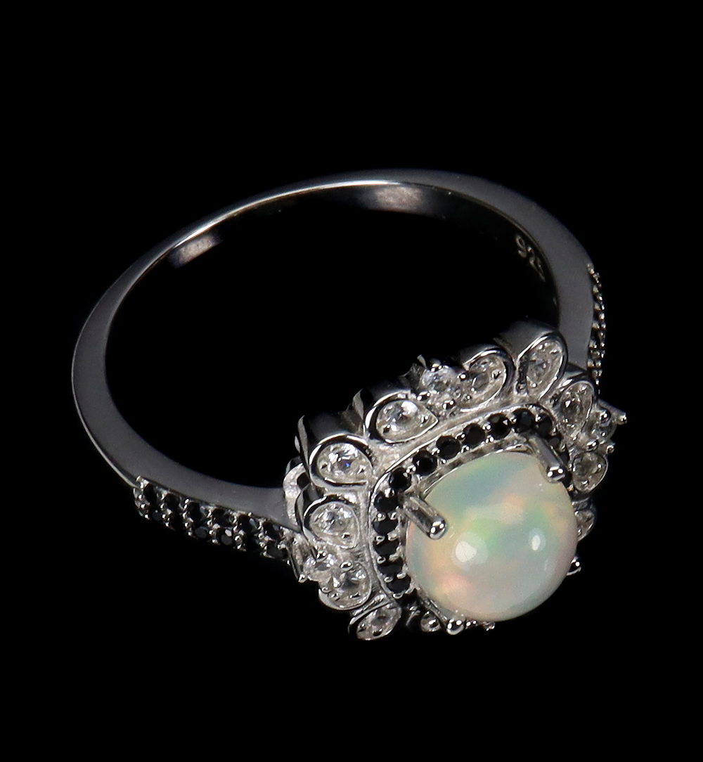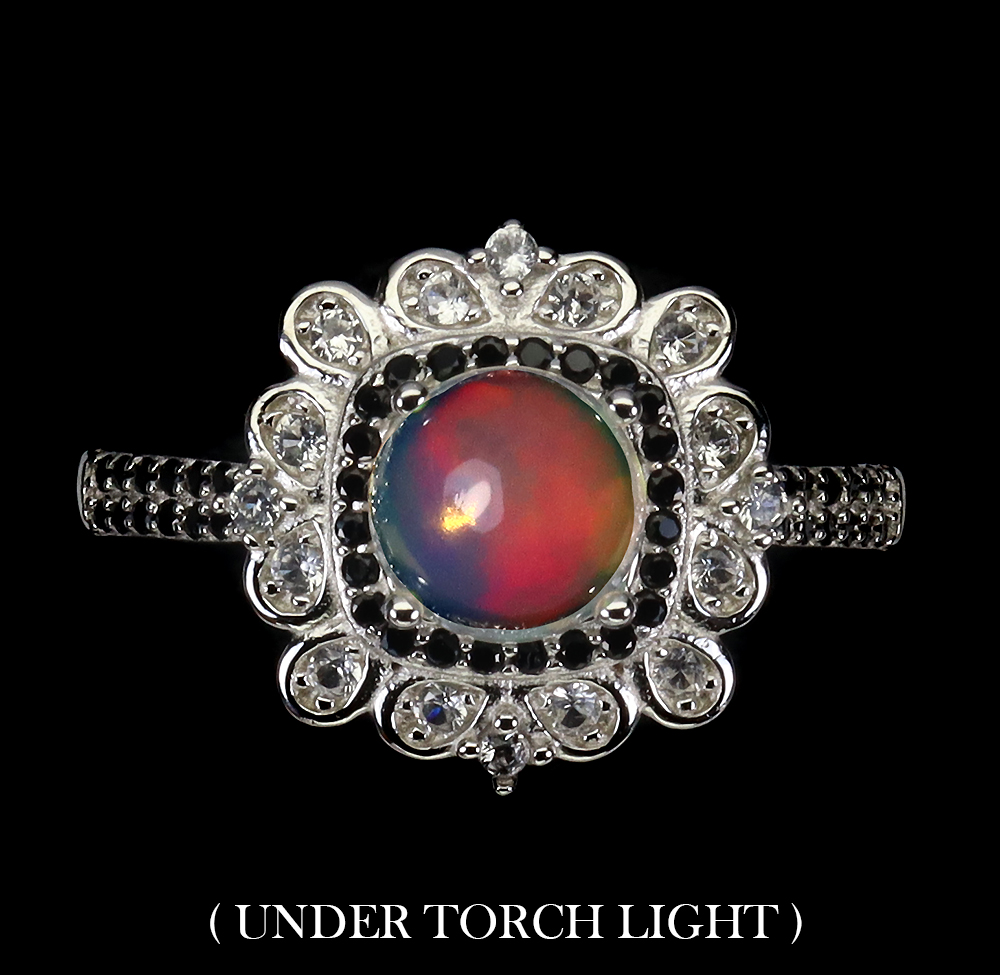 925 Sterlingsilber Ring Rund Feueropal 7mm Topas Spinell Edelstein Schmuck 9,5