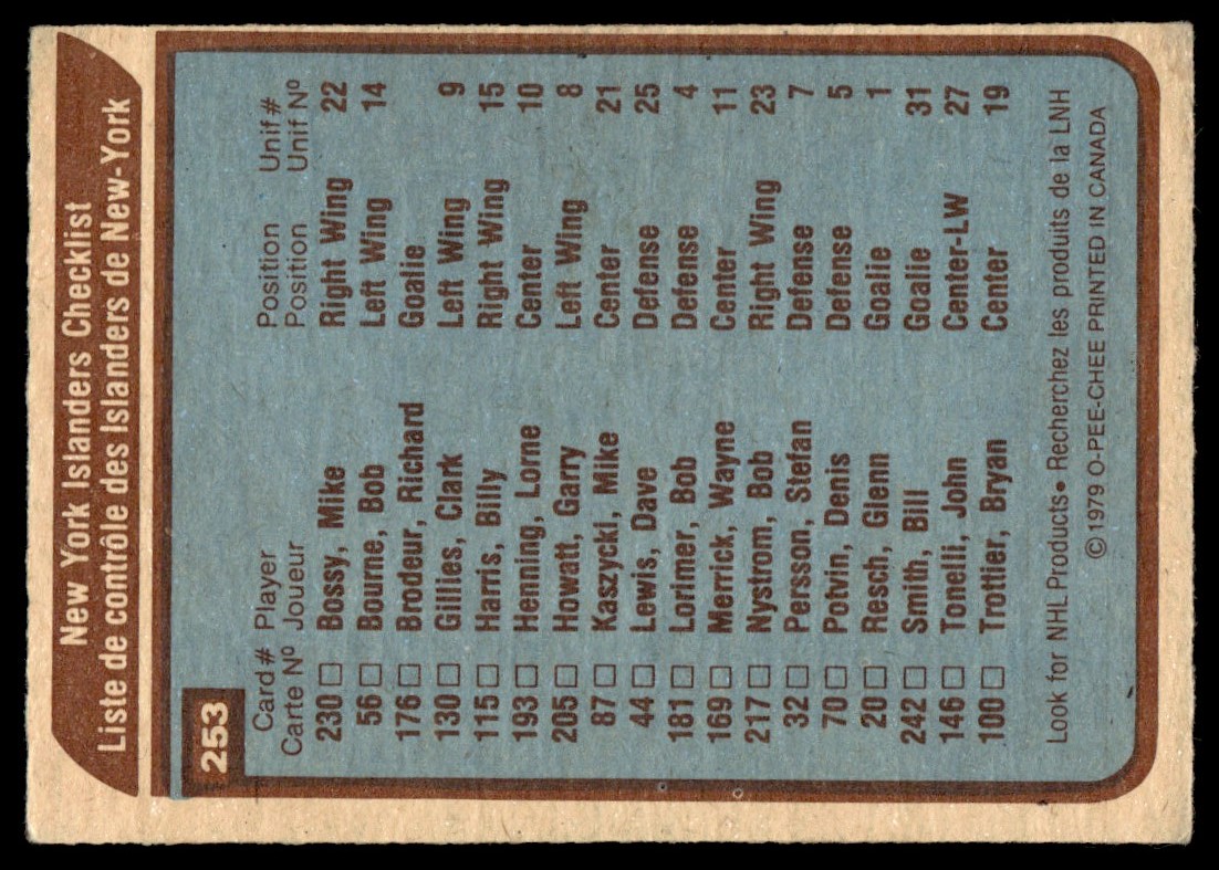 | 1979-80 O-Pee-Chee New York Islanders Team Unmarked #253 |