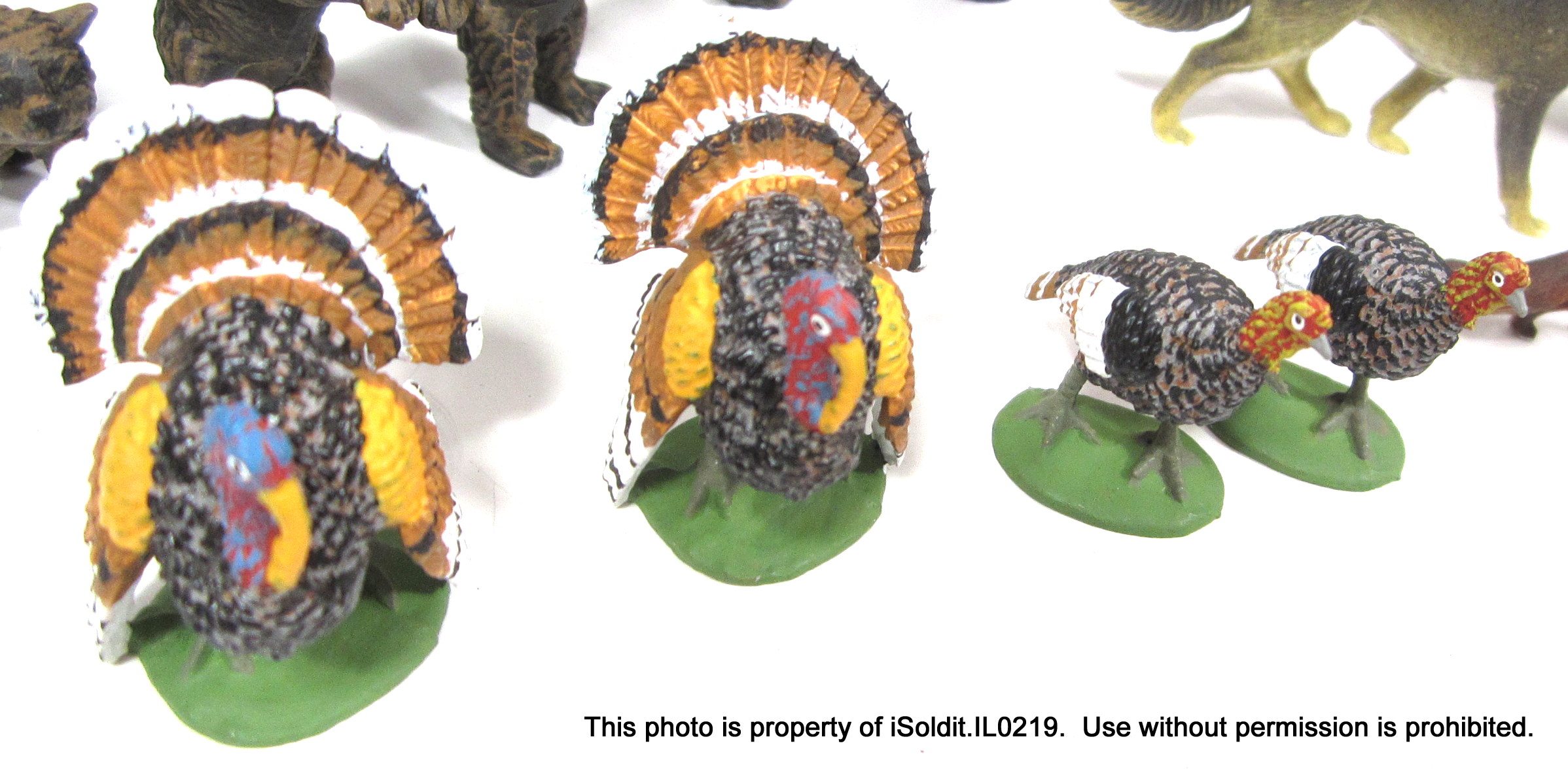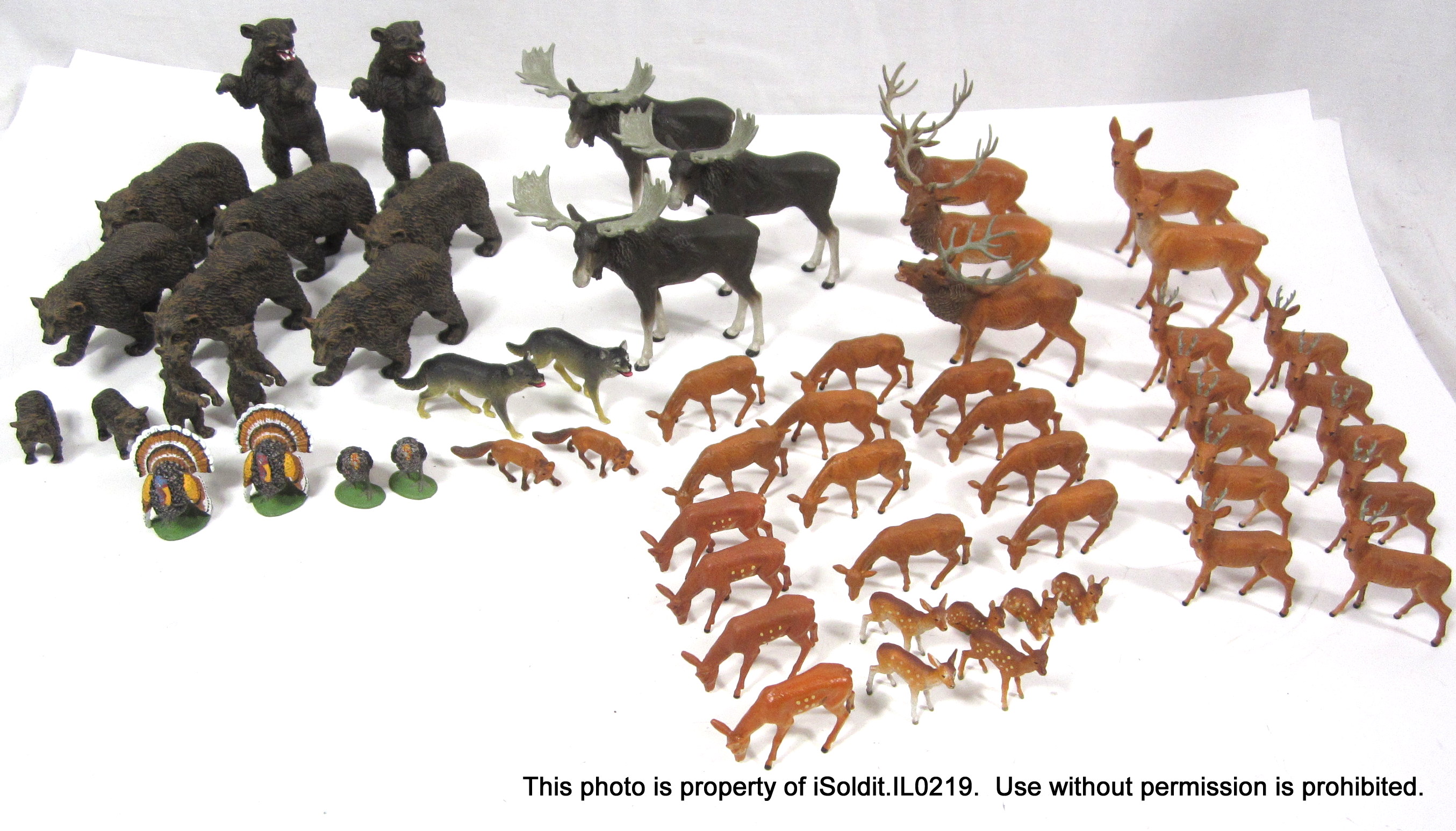 For sale here is a 58-piece collection of VINTAGE ELASTOLIN G-SCALE WILDLIFE ANIMAL FIGURES. They range in height from approx. 1/2" to 4". Pre-owned, they are in great condition. Everything pictured is included in this sale. Thank you for your interest!