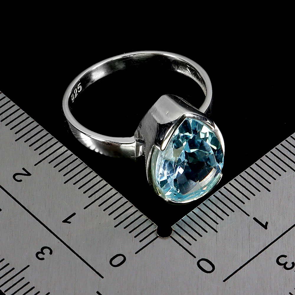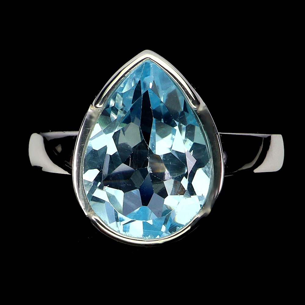 925 Sterling Silver Ring Pear Sky Blue Topaz 14x10mm Gemstone Jewelry Size 9