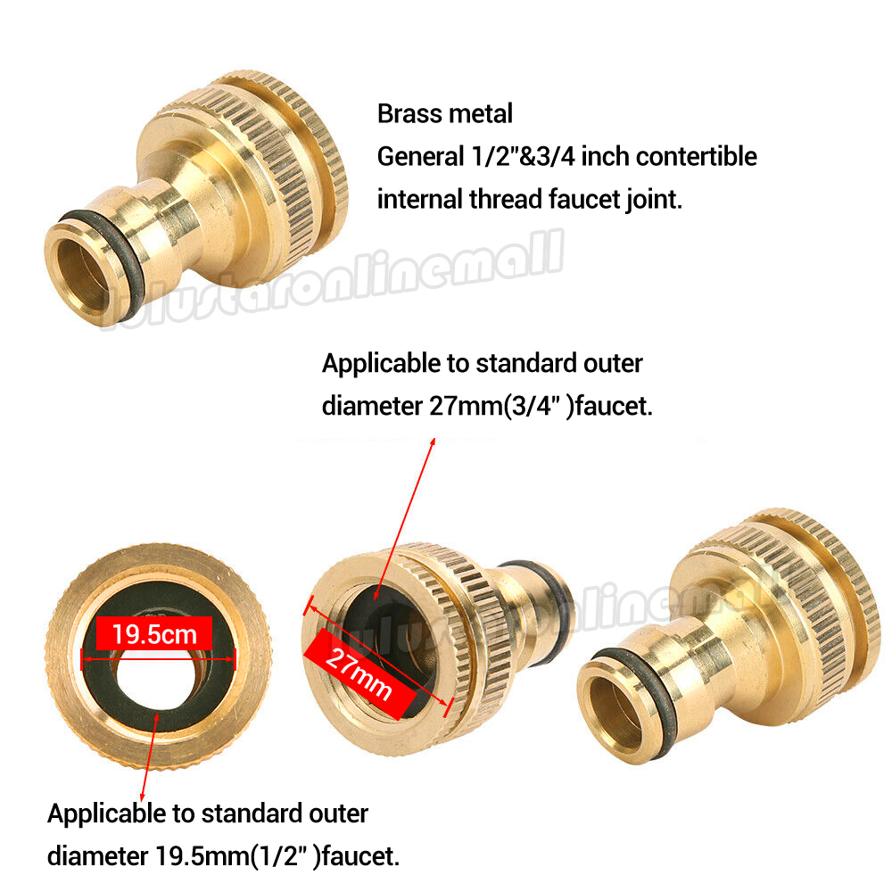 - Tap Adaptor Size: the thread diameter of 1/2 inch and that of the 3/4 inch; the connectors fit 1/2 inch and 3/4 inch outer diameter thread of tap or faucet respectively