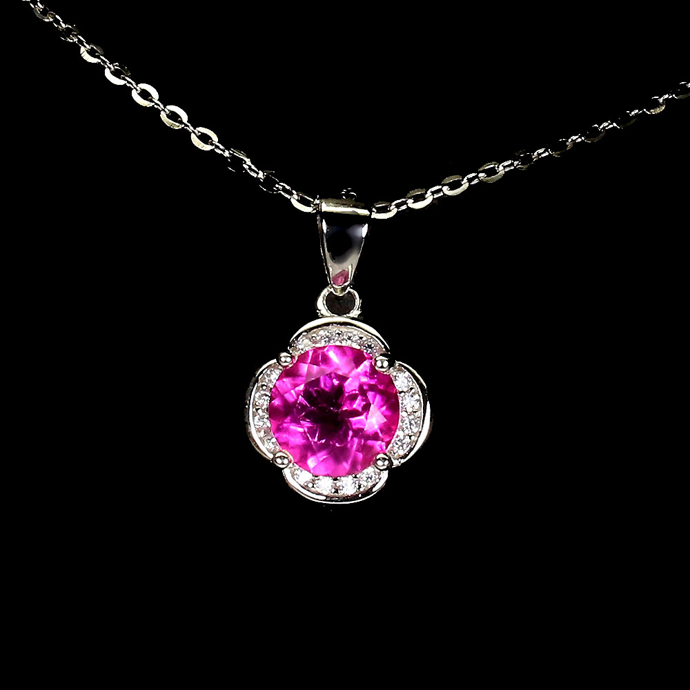 Topaz rosa rotondo con rivestimento in superficie 7 mm simulato cz 925 collana in argento sterling 18