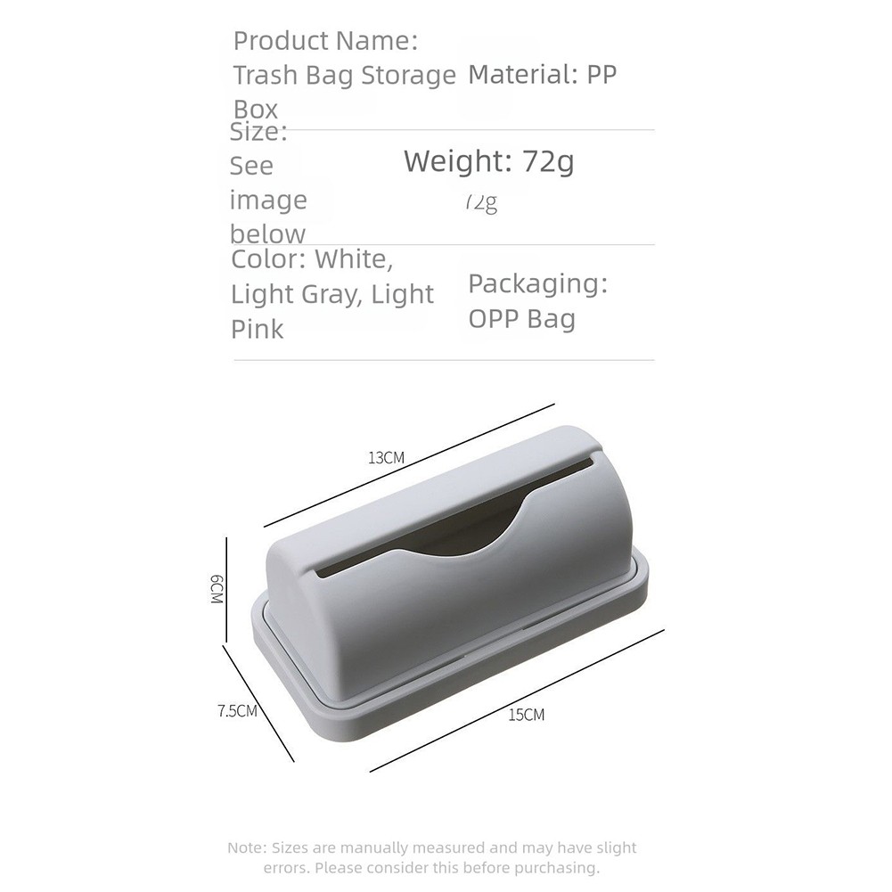 *Compact Size: With dimensions of 6x3x2.5 inches, this compact trash bag container is perfect for small spaces,  versatility and ease of placement in various locations such as bathrooms, closets, or laundry rooms.