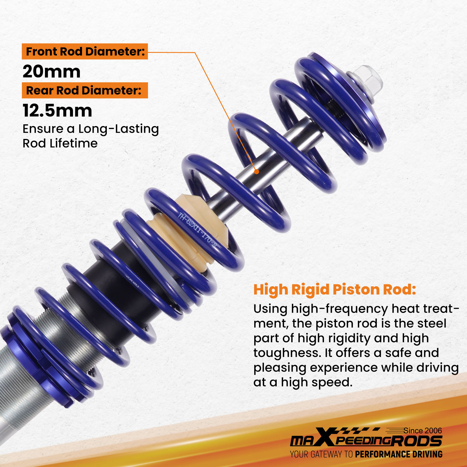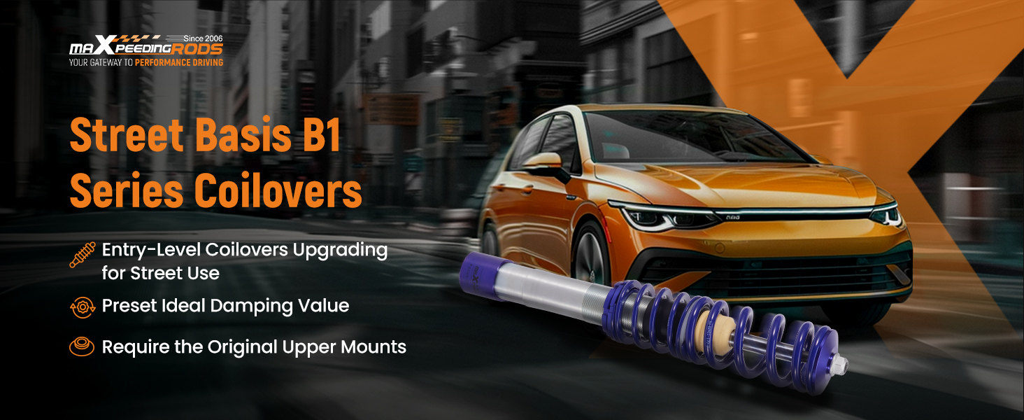Die MXR-B1 Serie von maXpeedingrods ist ideal für diejenigen, die die alte abgenutzte Federbeine wechseln und gleichzeitig das Handling verbessern möchten. Er ist höhenverstellbar und hält die OE-Fahrqualität weitestgehend aufrecht.