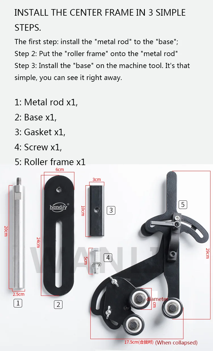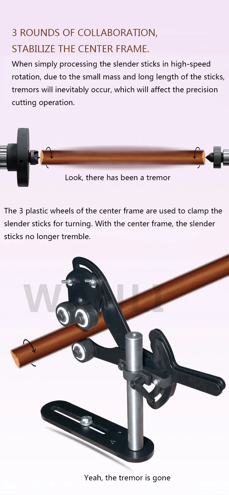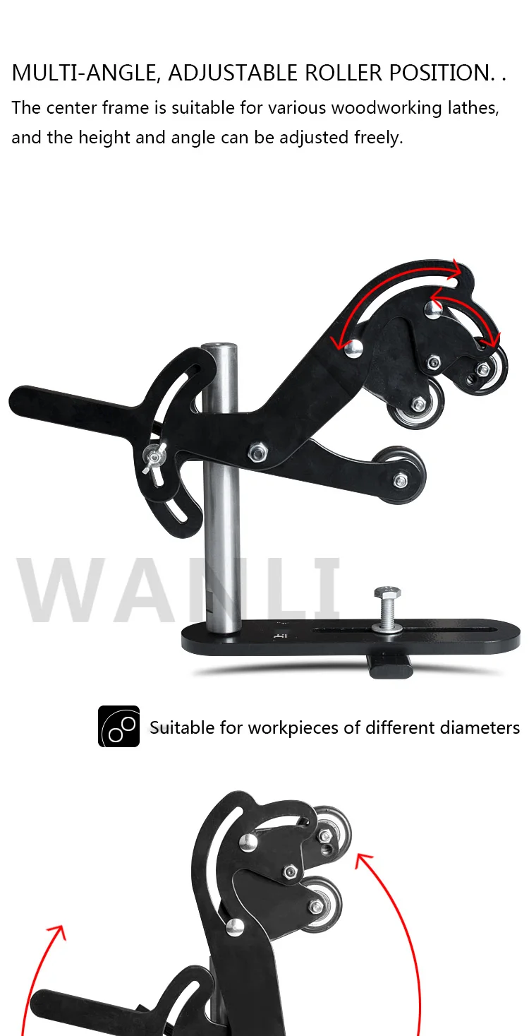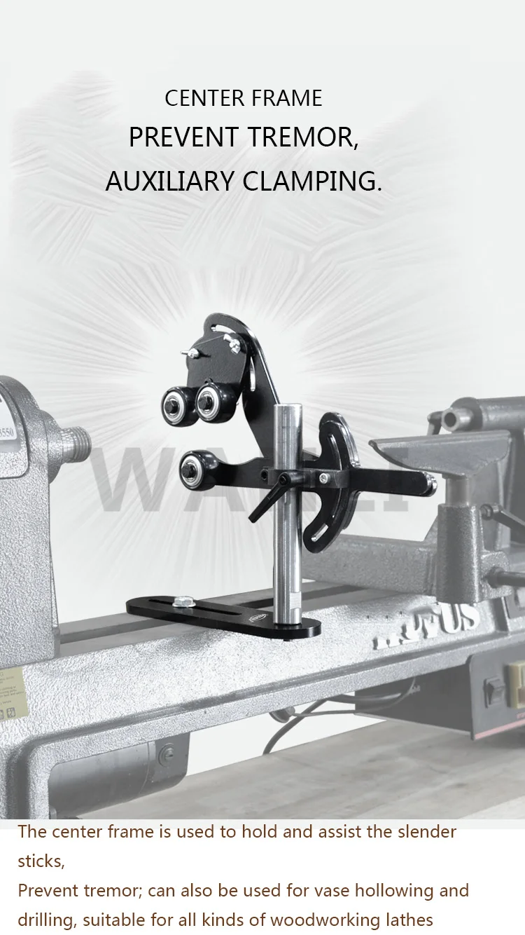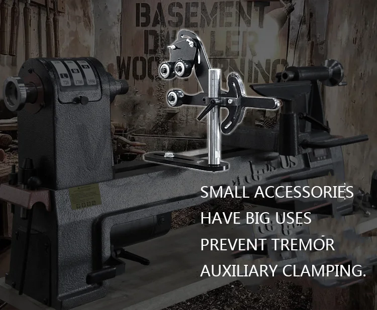 Hochwertige dreifüßige Mittel- und Werkzeugauflage mit Holzschraube und vibrationsdämpfender Halterung für die Mittelauflage einer Holzdrehmaschine