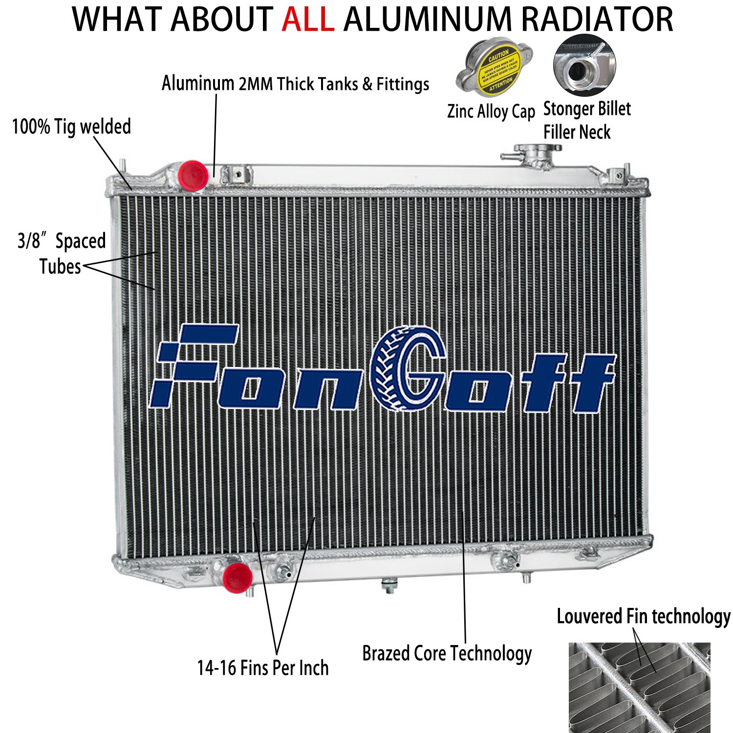 Most importantly, it has a much higher capacity for coolant than stock ones, which means that your cooling system will be more efficient and will be more resistant to temperature surges in racing applications.