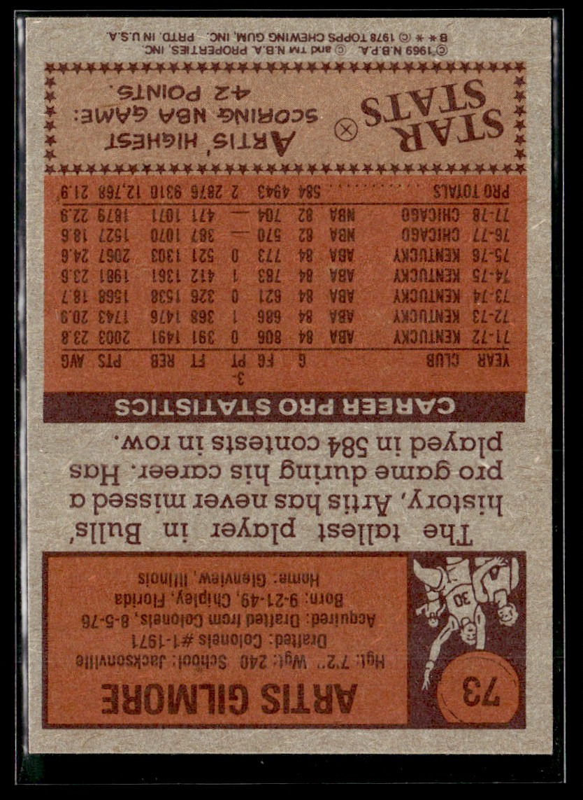 | 1978-79 Topps Artis Gilmore NRMT/MT Set Break #73 |