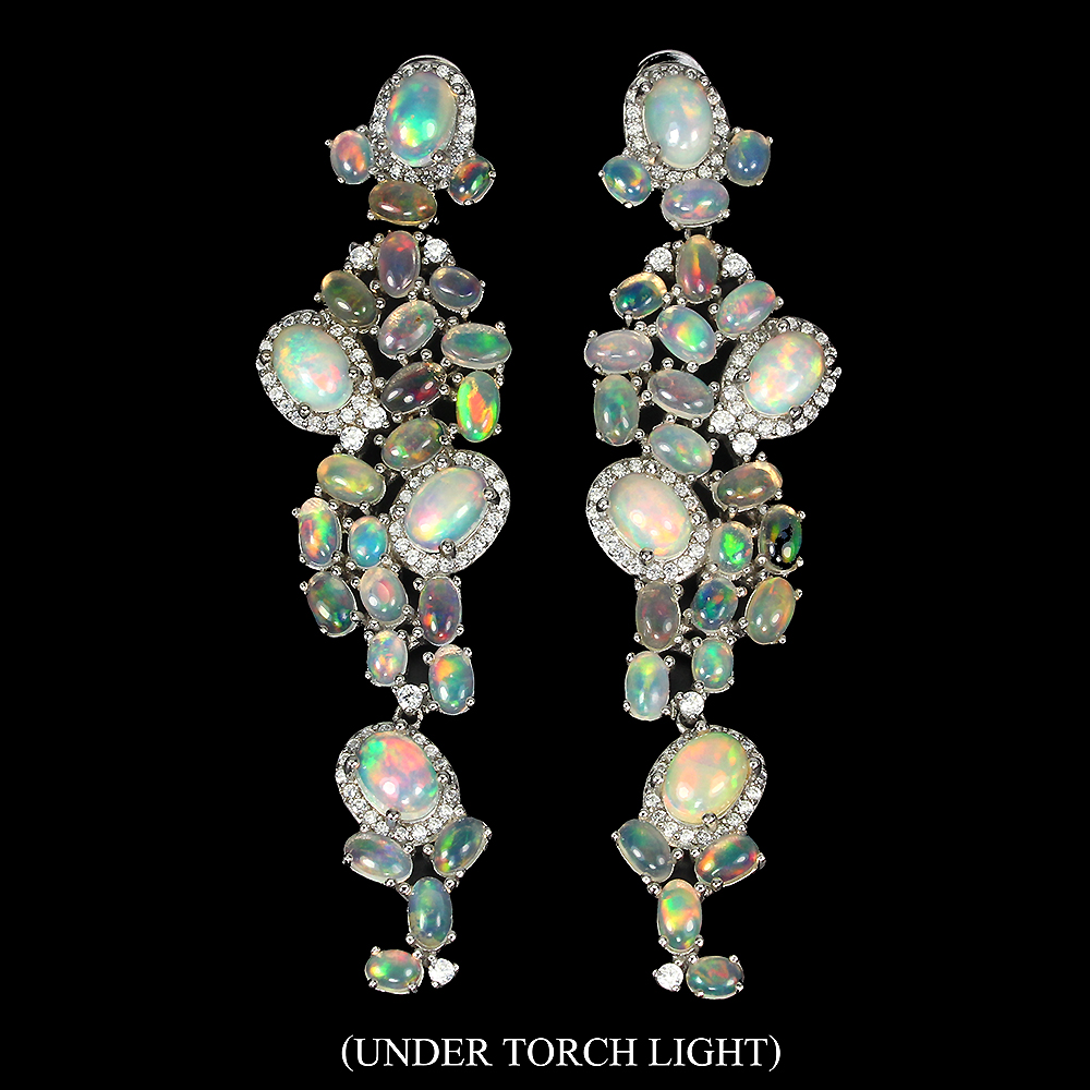 Unheated Oval Fire Opal Rainbow Flash 7x5mm Cz 925 Sterling Silver Big Earrings