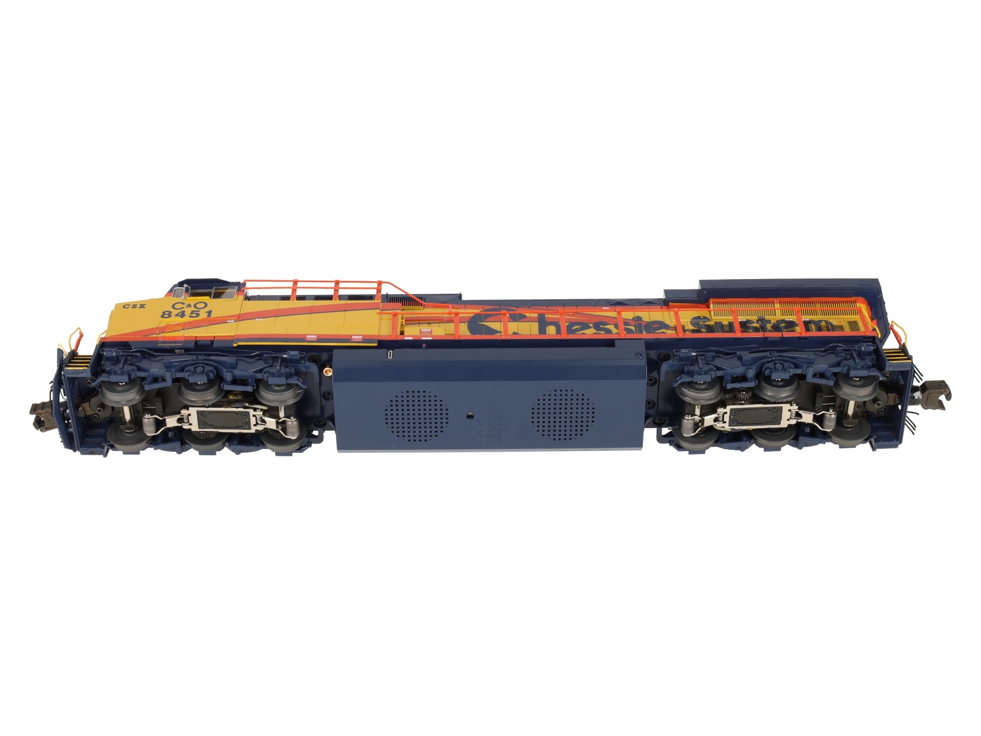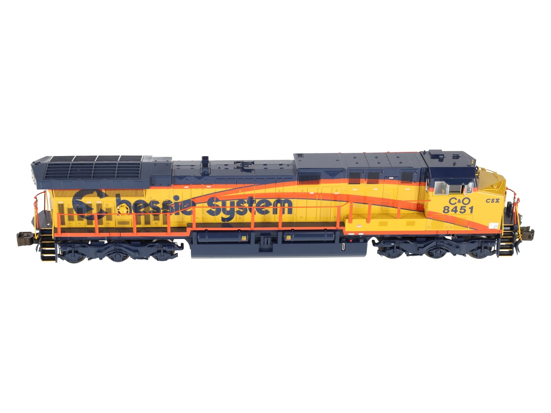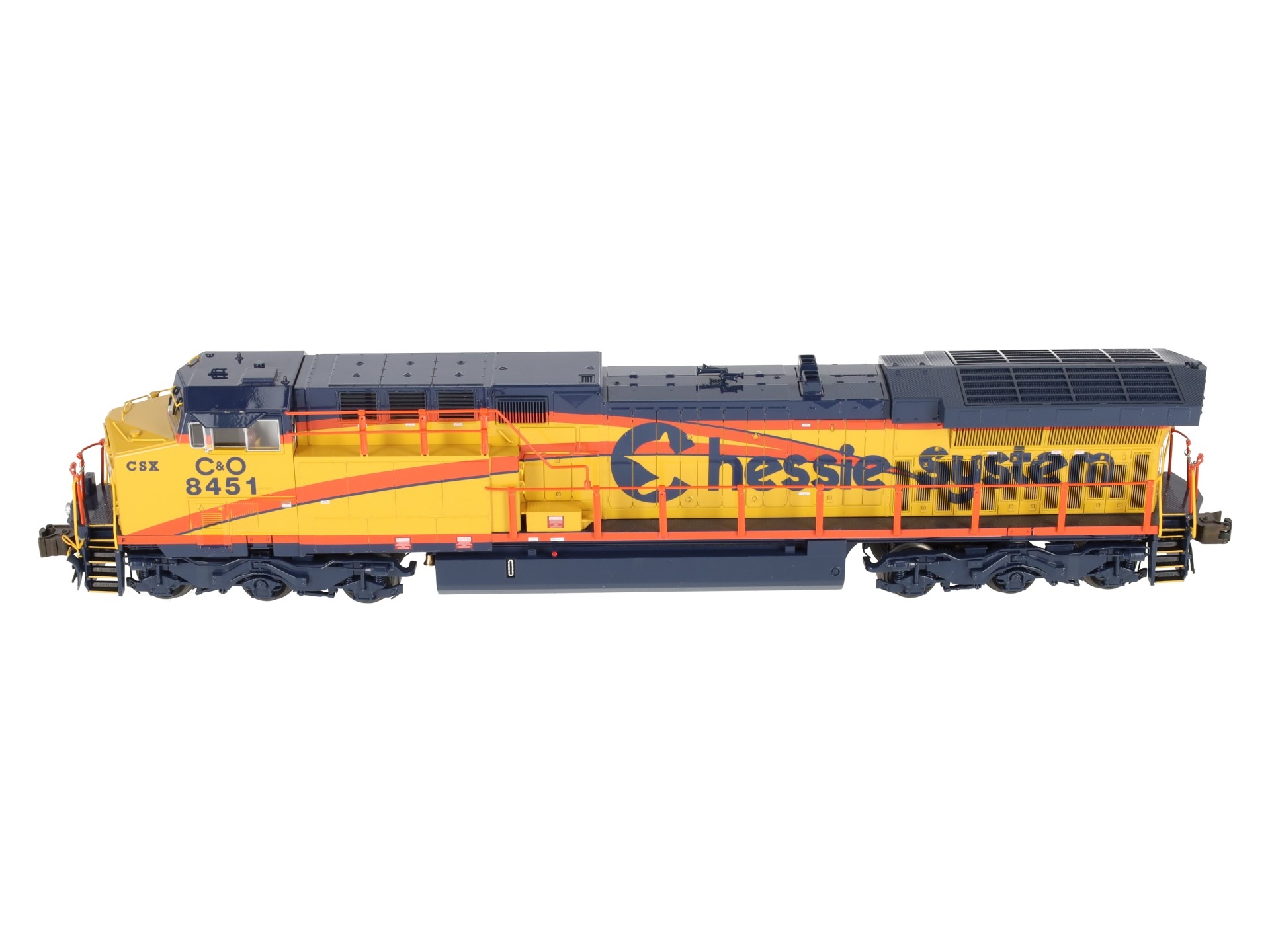 This is Lionel 6-38405 CSX AC6000 Heritage Chessie Diesle Loco #8451. Lionel continues its tribute to the rich heritage of modern railroads, honoring CSX. CSX was one of the few railroads to purchase AC6000 diesels, and Lionel’s new CSX Heritage diesels feature special decoration in honor of the classic heritage railroads.