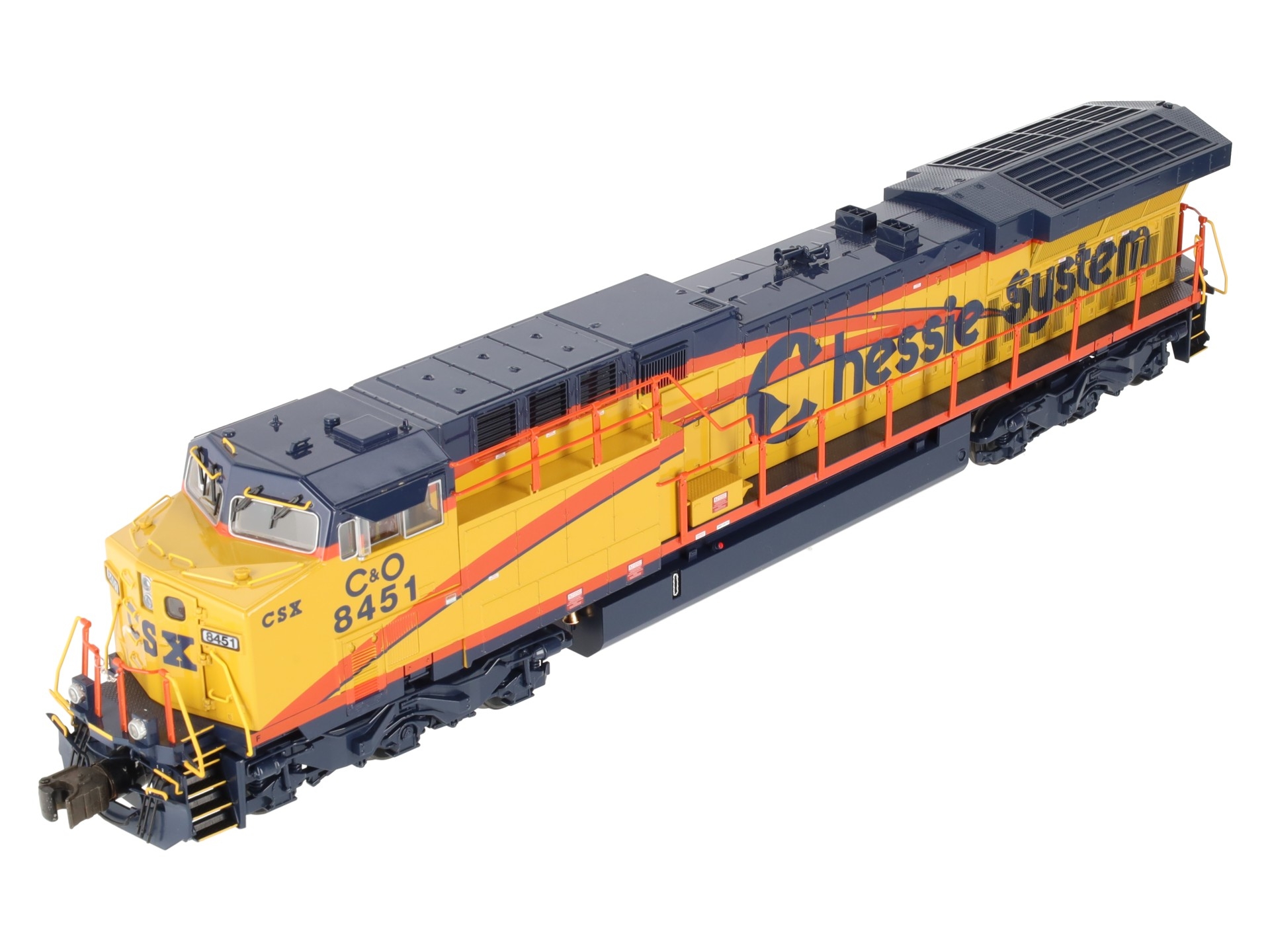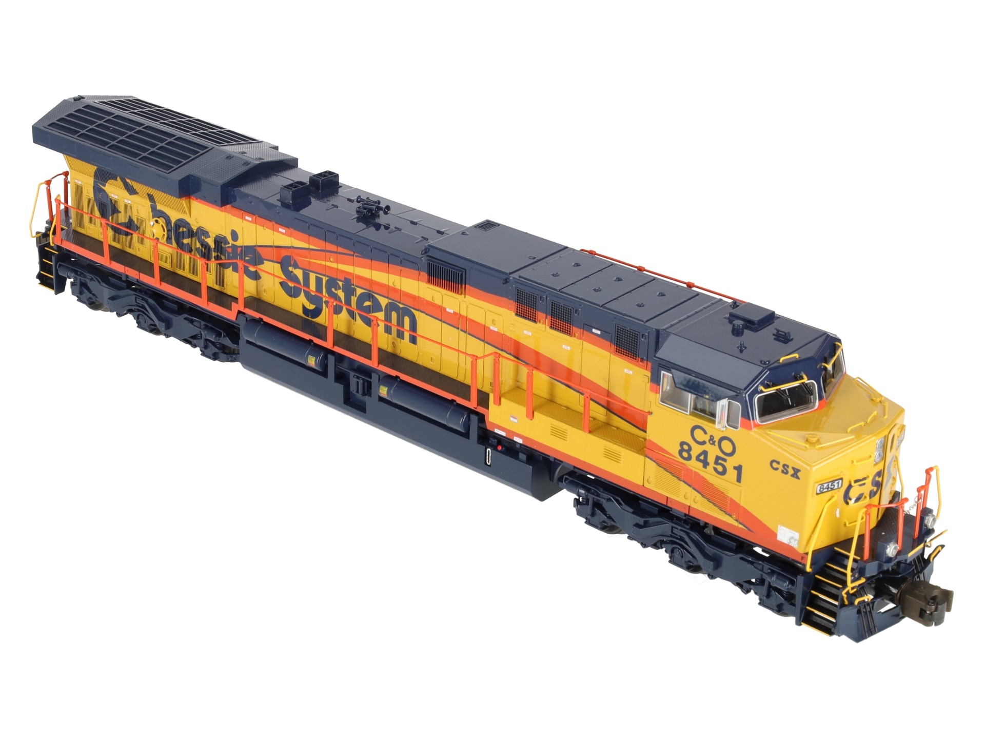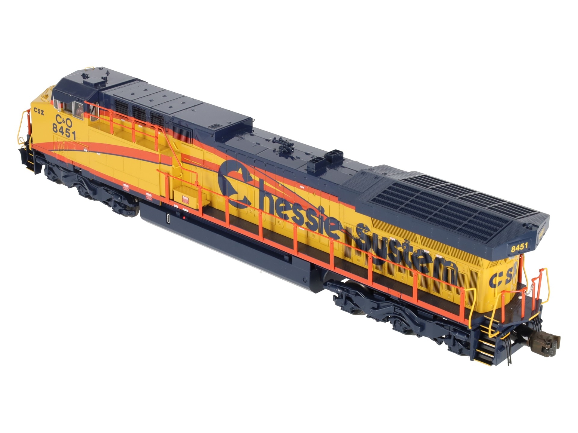 This is Lionel 6-38405 CSX AC6000 Heritage Chessie Diesle Loco #8451. Lionel continues its tribute to the rich heritage of modern railroads, honoring CSX. CSX was one of the few railroads to purchase AC6000 diesels, and Lionel’s new CSX Heritage diesels feature special decoration in honor of the classic heritage railroads.