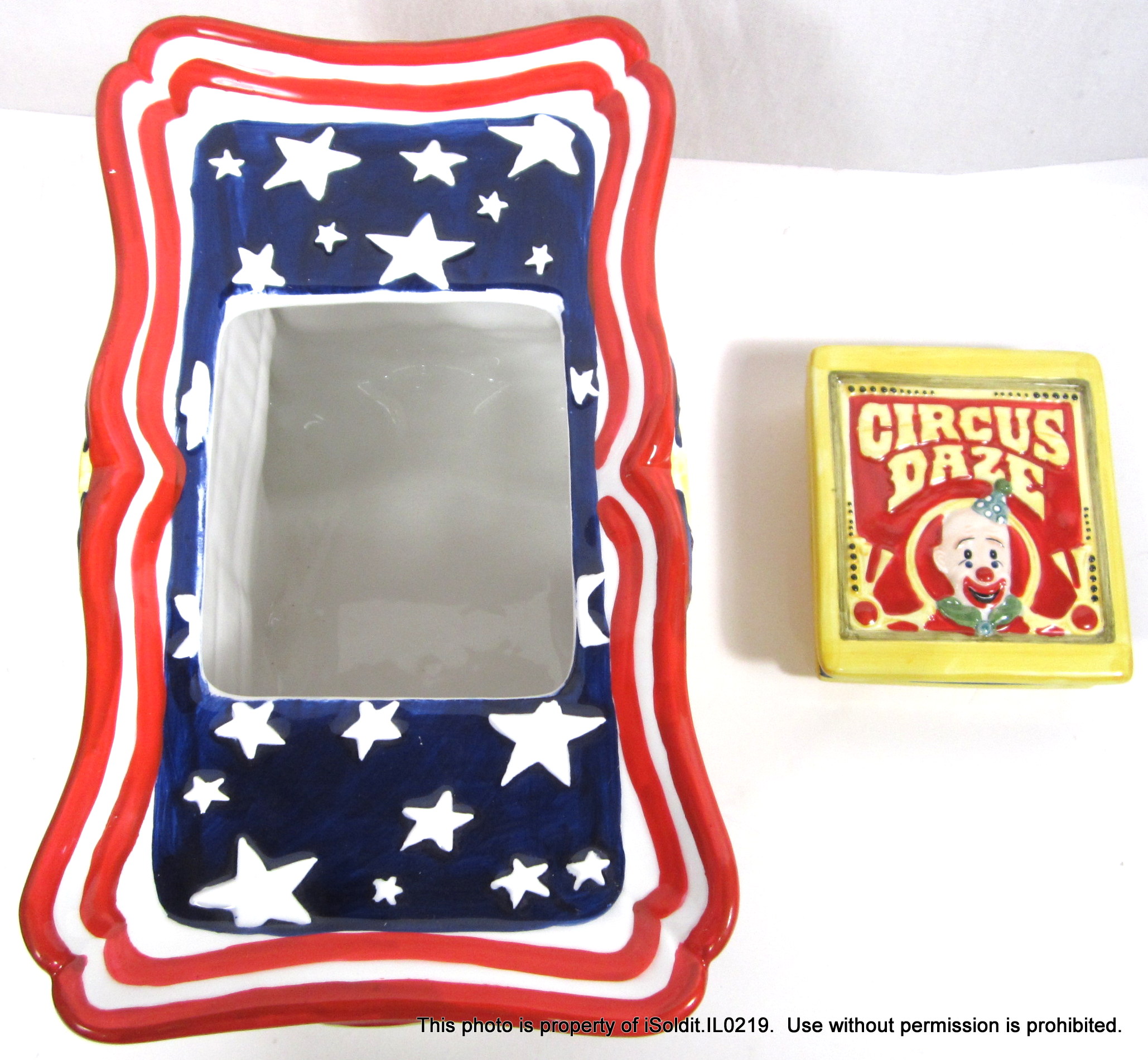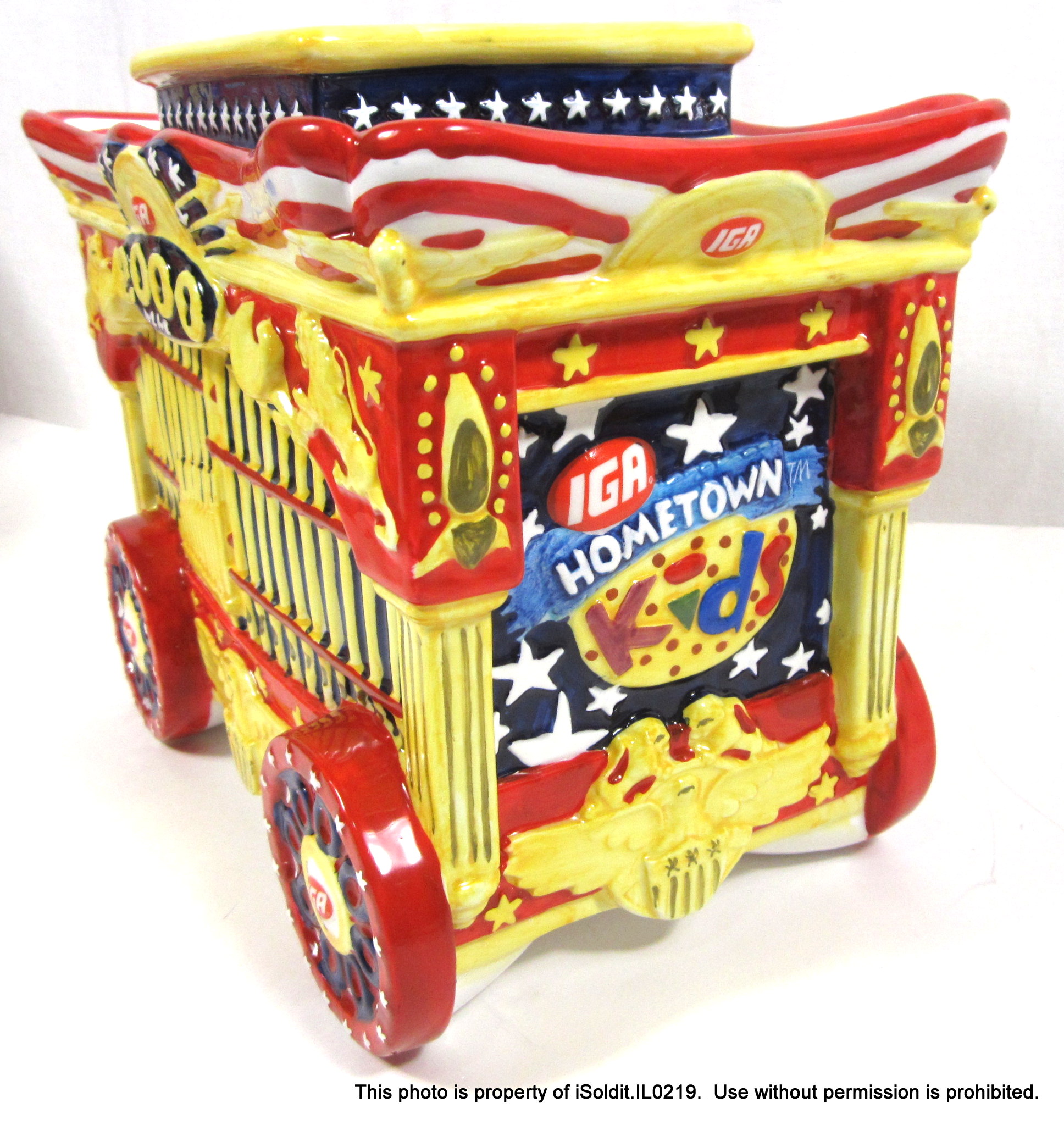 For sale here is a VINTAGE IGA CIRCUS DAZE COOKIE JAR, c2000. It feaures a ceramic Circus Wagon in vibrant colors. A Special Edition item. Item is NEW IN BOX. A wonderful collectible! Thank you for your interest!