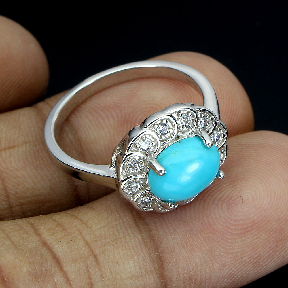 Unheated Oval Blue Turquoise 9x7mm Simulated Cz 925 Sterling Silver Ring 6.5