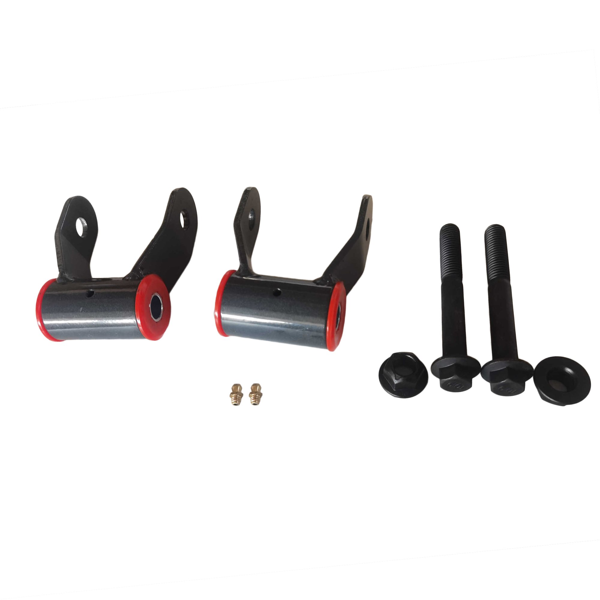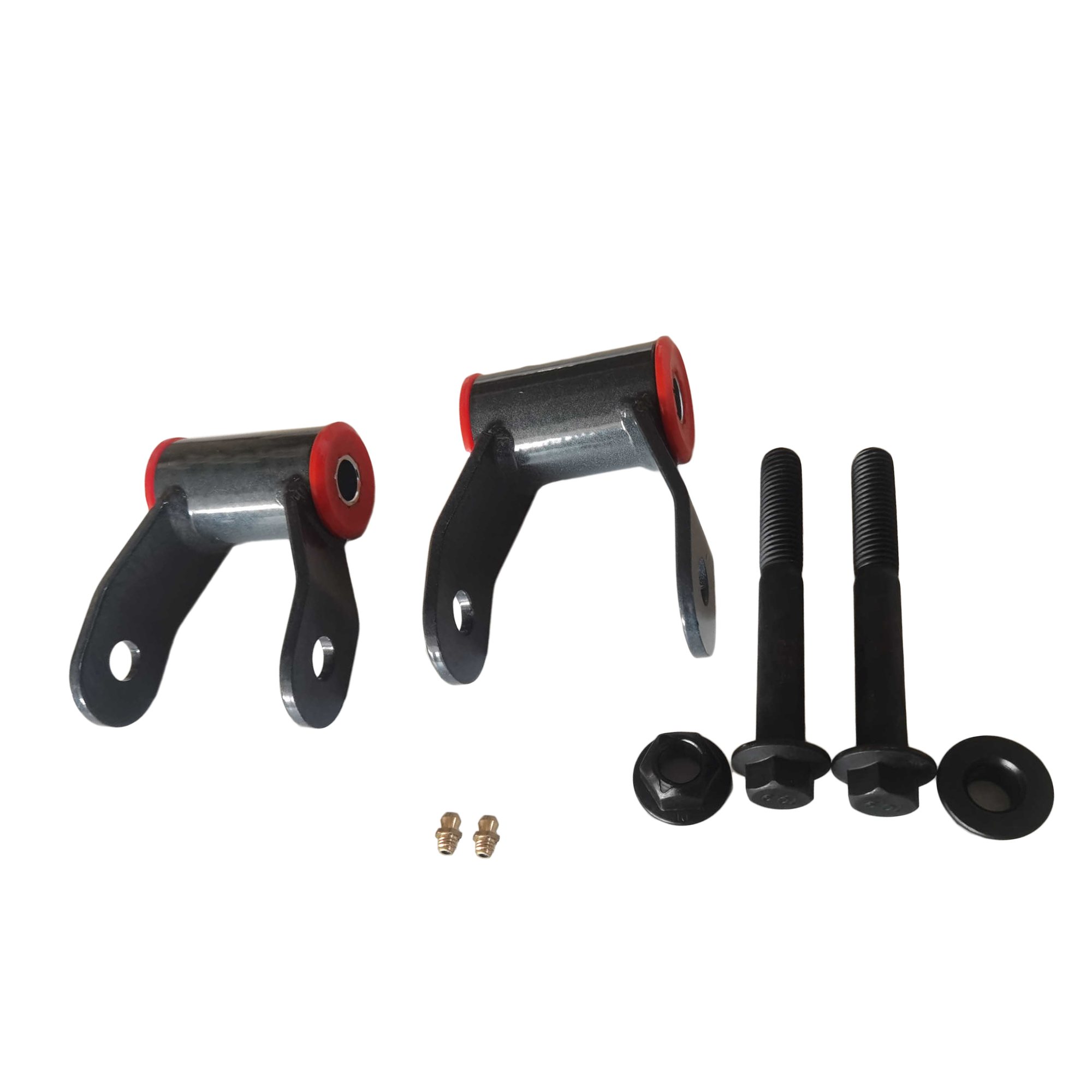 1998-2011 FORD RANGER 2WD 4X4 KIT CONTENTS: (R) 2" Powder Coated Steel Drop Shackles (R) Comes with Bushings and Zerk Grease Fittings Bolts are custom made for the perfect fit