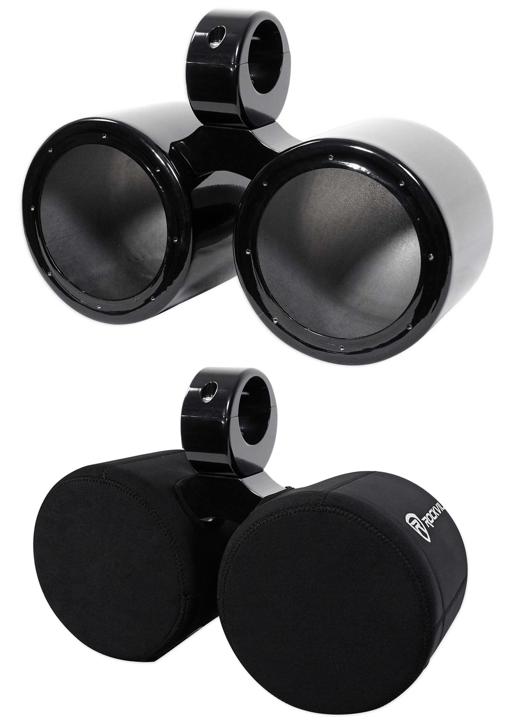 Rockville is proud to introduce our all new line of aluminum wakeboard cans. The DMAC65B features double pod design which allows you to mount two 6.5” speakers. It includes our rugged universal aluminum clamp for easy installation to any wakeboard tower pole measuring from 2" to 2.5" diameter. Six precision molded high impact rubber inserts guarantee fitment on towers from 2” to 2.5”. Our clamp inserts are precision-fitted to sit perfectly inside the metal clamps. The speaker terminals are safely enclosed inside the waterproof speaker canister.