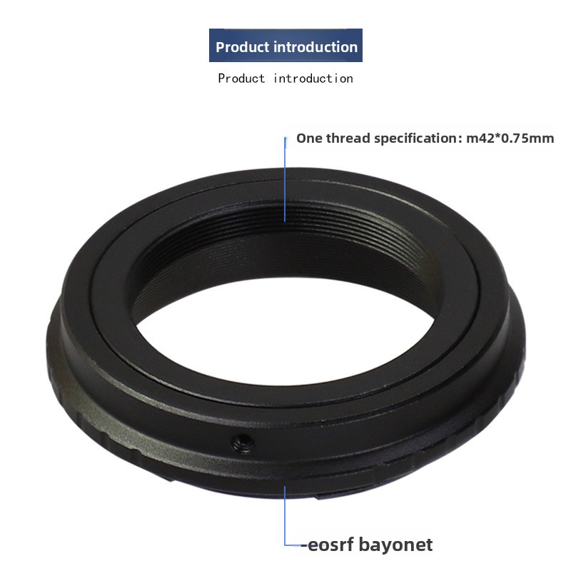 This is an adapter ring that connects M42X0.75mm female thread (T2 thread) to Canon RF Mount. It boasts high precision, is crafted from premium aluminum alloy, and weighs 40 grams.
