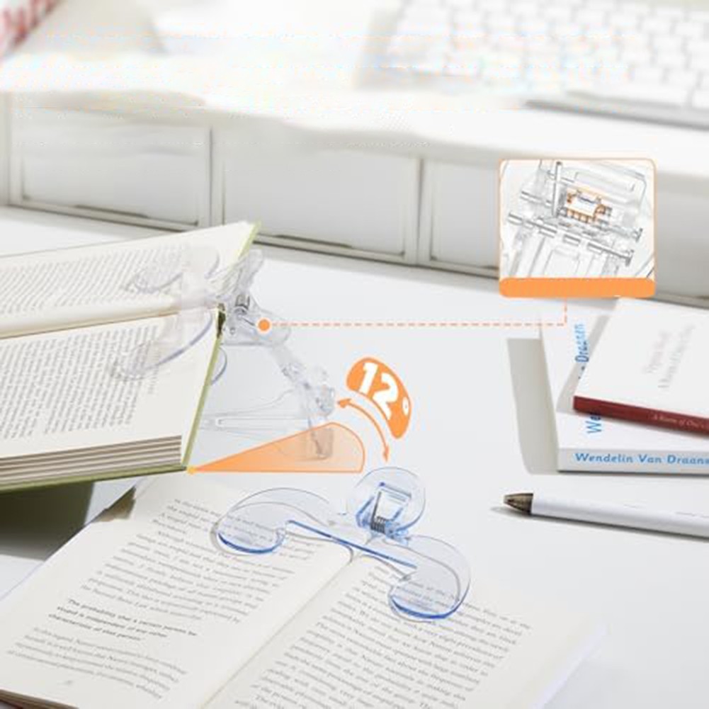 Lot de 4 Clips de Livre Transparents avec Inclinaison 12 Degrés pour Mains Comm