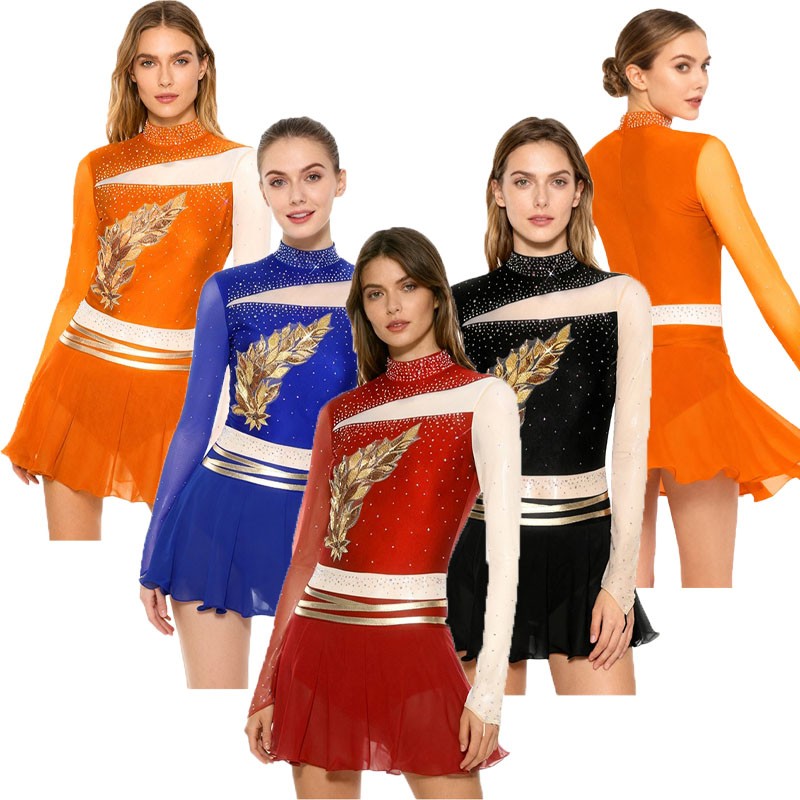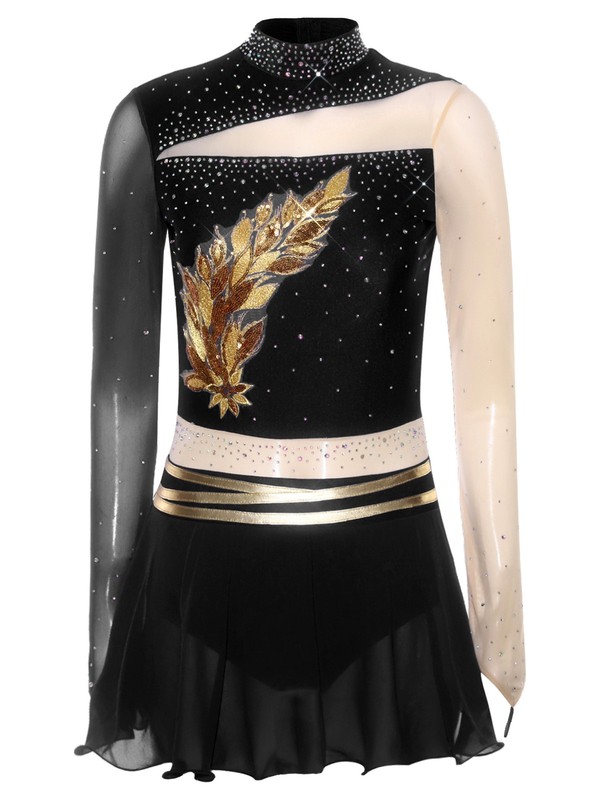 Crafted from polyester and spandex blend, the dress is stretchy and form-fitting, offering great flexibility for figure skating and dance movements.