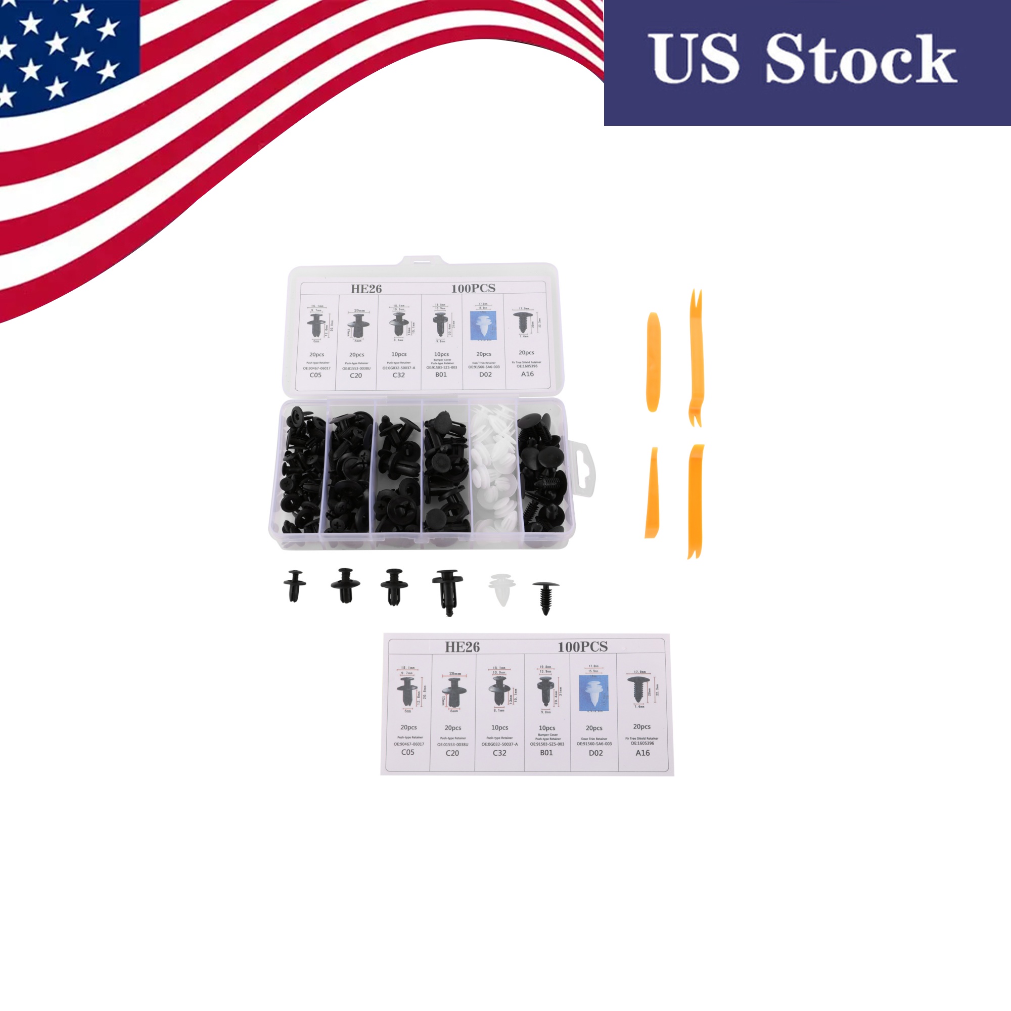 Total 100 Pcs Clips Retainer (6 different sizes )