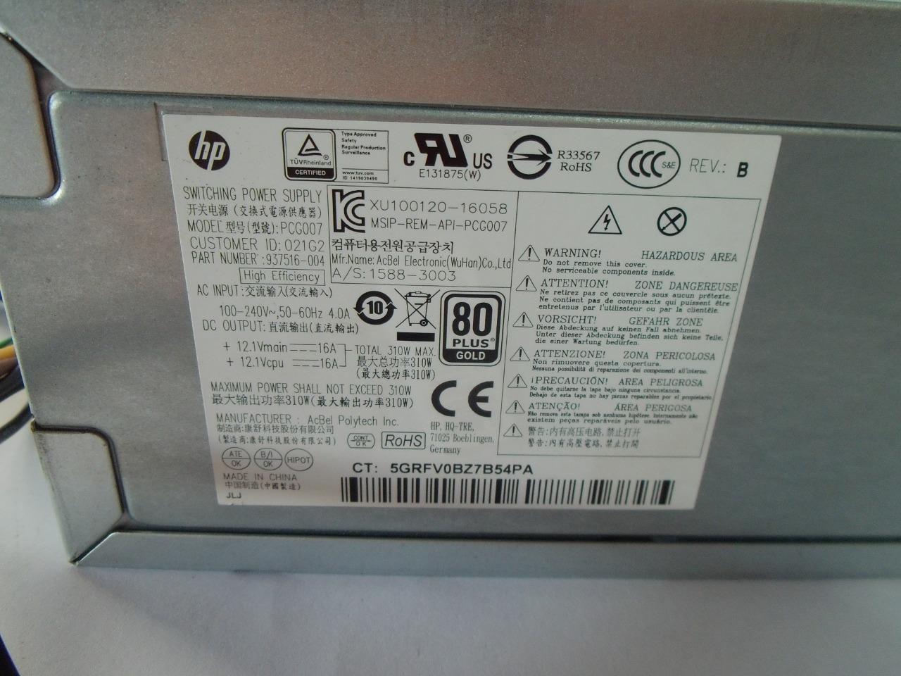 HP ProDesk 280 288 480 G3 PCG007 DPS-310AB-1A 937516-004 310W Power Supply
