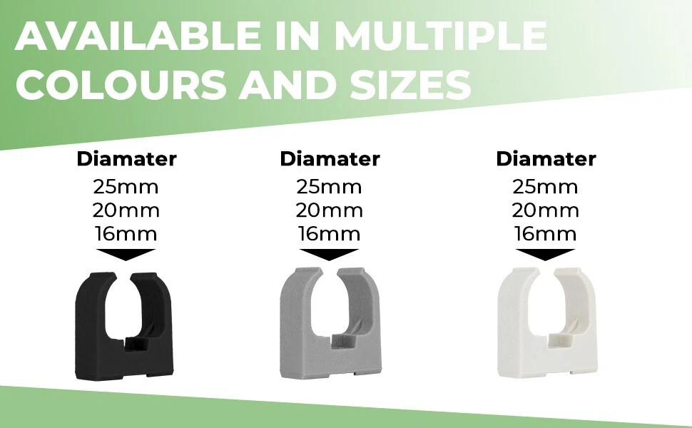 Secure your conduit cleanly and professionally with these screw-mounted Saddle Cable Clips. Available in sizes for 16mm, 20mm and 25mm outer diameter conduit, they?re ideal for use in homes, workshops, garages or commercial installations.