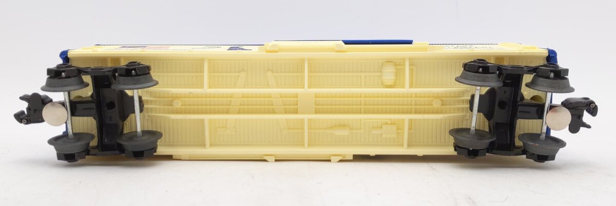 Here is a Lionel 6-7601 O Gauge State of Delaware Boxcar #7601. This car is the from the famous Lionel Bicentennial Set from 1974-76. The complete set includes the 1776 U36B Diesel, 13 boxcars numbered 7601 through 7613, each one commemorating one of the original 13 states in order of their admission to the Union, and the 7600 Caboose. This is a very sharp set and the decorations are attractive and well done. This car features sliding doors, plastic trucks, operating knuckle couplers and metal wheels and axles.