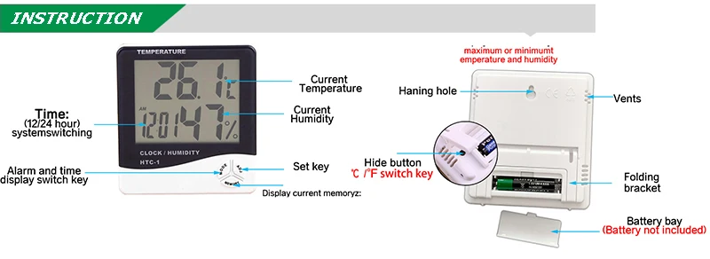 3. Memory Function: When pushing the button MEMORY , it could display the memory of temperature and humidity maximum and minimum