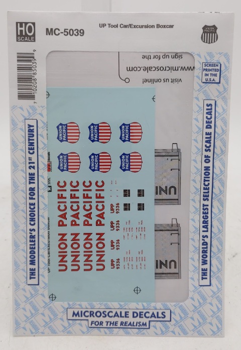 This is a Microscale MC-5039 HO Scale Union Pacifc (UP) Tool Car/Excursion Boxcar. These cars were once used to store mail in them. Now it stores the tools and supplies to make Public Displays possible. Waterslide Decal.