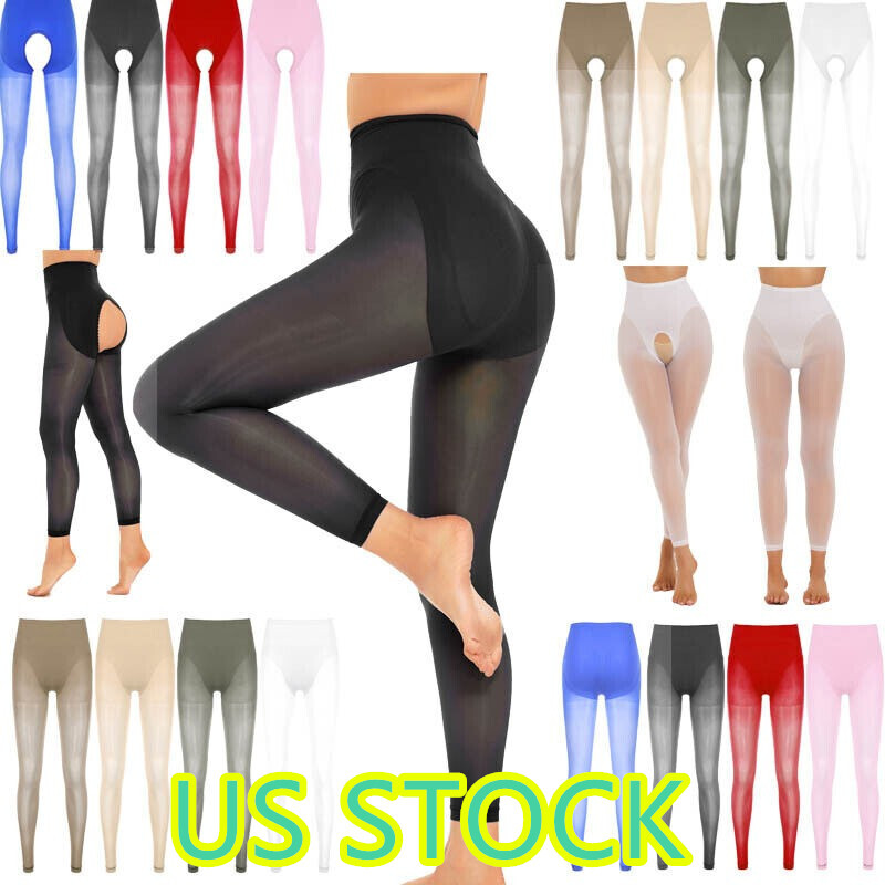 Womens Hollow Out Stockings Leggings Mid Waist Cutout Crotchless Pantyhose.
