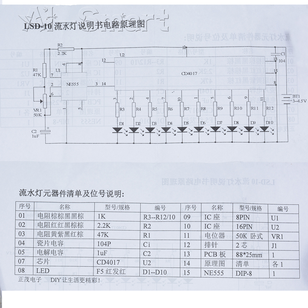 1-10PCS NE555+CD4017 LED Light Chaser Sequencer Follower Scroller Module DIY Kit