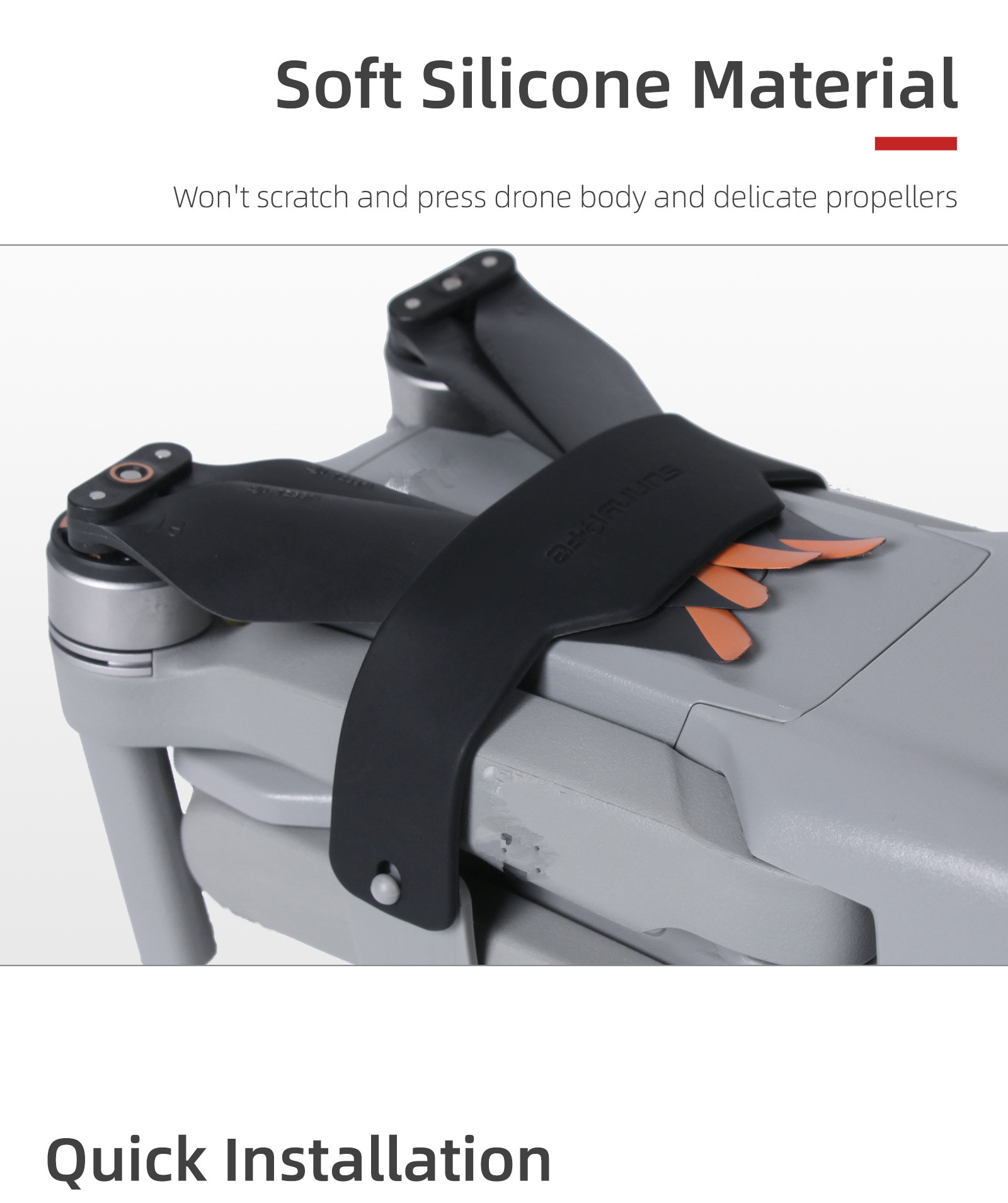 Plastic, soft TPU, with good wear resistance, dustproof, waterproof and oilproof performance. The camera is totally covered and there are guilds to keep the propeller from shifting around.