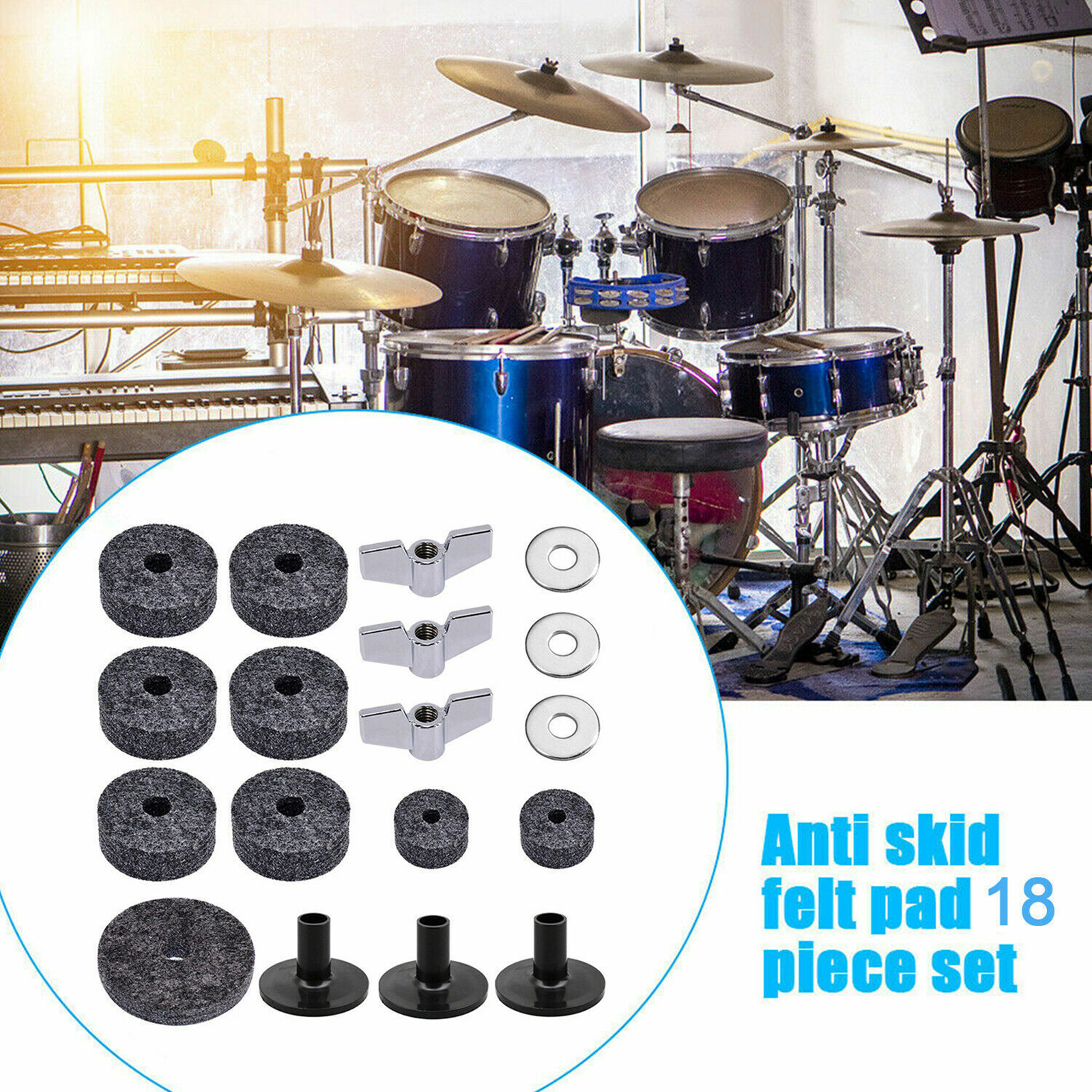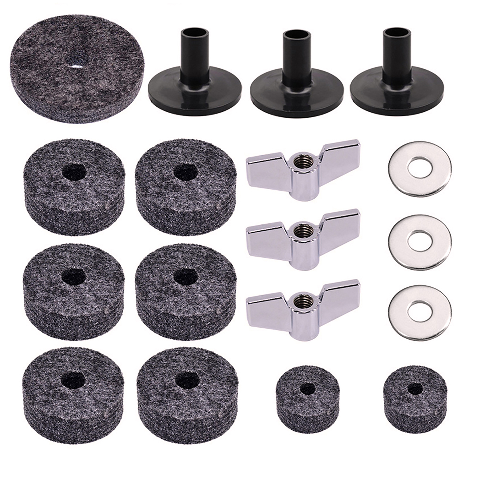 Standard size felt pads, sleeves, nuts, suitable for most drum sets.