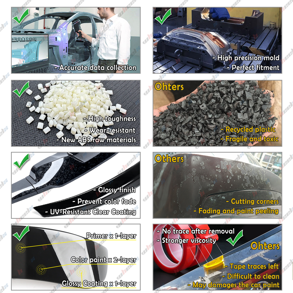 WheelX specializes in automotive modified parts, include car front bumper lips, rear spoilers, grilles, side mirror cover, side skirt, bumper apron, etc.